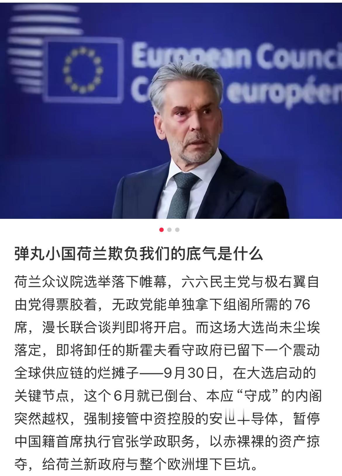 人走了, 账就想赖? 荷兰前首相斯霍夫下台了,但他干的糊涂事可没跟着翻篇! 闻泰科技砸330多亿买下的安世半导体,可是全球汽车芯片的硬角色,被他当个看守政府就敢伸手抢。 扯着“供应链安全”的幌子,说要搞治理改革,说白了就是换锁夺权,让中企出钱当甩手掌柜。 更滑稽的是还拉美国当背书,逼人家换中方CEO,结果美国新规里压根没这说法,纯属自导自演的明抢。 真当安世离了中国不行?这几年闻泰砸钱搞研发,让它成了净利润12亿的“现金牛”,欧洲想接盘也接不住底气。 斯霍夫拍拍屁股走人,荷兰政府就得认这笔账。这哪是抢企业,是砸自己“商业立国”的招牌! 这种拿契约精神当擦脚布的操作,真能长久?你们觉得荷兰新政府敢不认这笔账吗?荷兰芯片困局 荷兰安世半导体 荷兰安世事件 荷兰芯片公司 荷兰安世 荷兰芯片危机 荷兰动手断供 中国芯片企业亮家底