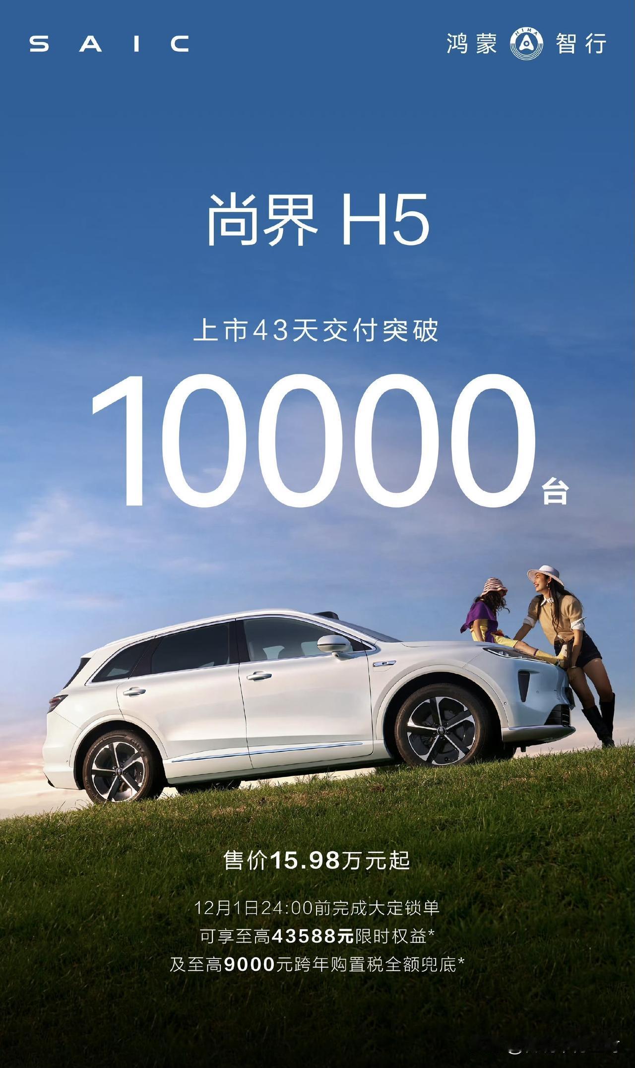 尚界H5终于发交付战报了。 上市43天交付突破10000台。 感觉好像还不错啊,虽然相比上市前十几万的小订数还有不小差距,但就一个全新品牌来说,一个多月交付破一万也还可以。 后续还是要看口碑,如果尚界H5能像问界M系列在35-55万一样,在15-20万价位“通杀”,那这个市场容量可是更大的……