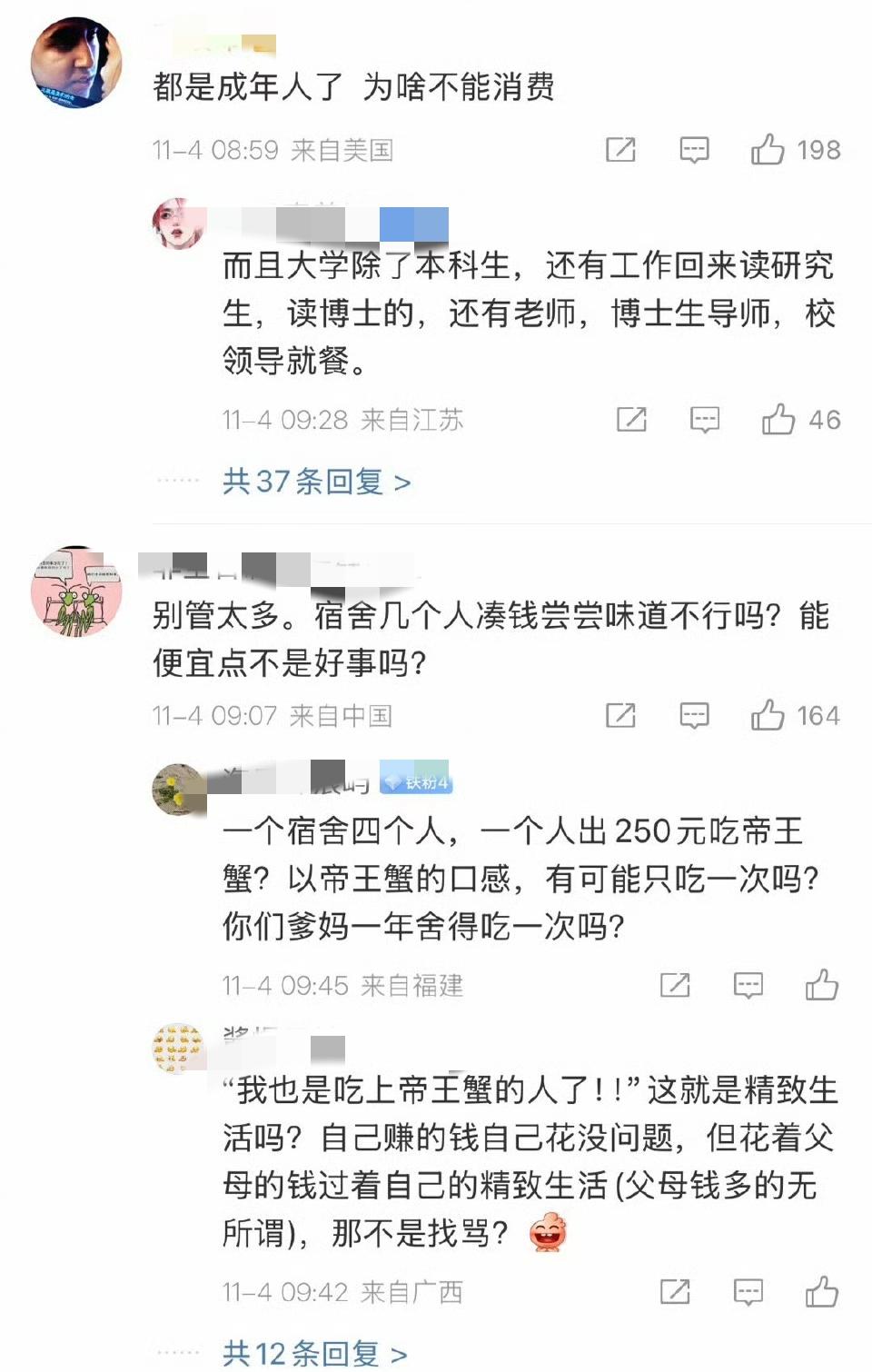南京大学食堂卖千元帝王蟹,这事到底该不该骂? 好家伙,南京大学食堂直接上999元一只的帝王蟹了!学生之前许愿开玩笑,没想到食堂真给端了上来,每天还限量一两只,得提前订。 有人说,高校食堂是吃大锅饭的地方,搞这么贵的东西,不是制造攀比吗?近千元的价格,抵得上不少学生半个月生活费了。 但另一边,支持的学生也觉得冤:四人拼单人均两百多,比校外餐厅便宜不少,毕业聚餐图个新鲜,怎么了?食堂又没逼你天天吃,边上10块钱的生蚝、几块钱的基础餐不都还在嘛。 其实吵来吵去,核心就一点:高校食堂能不能有“高端选项”? 看看实际反馈,这蟹销量不大,尝过的学生都说味道不错、性价比高,也没见谁因此攀比。校方也强调,这只是补充,基础伙食才是主体。 所以啊,别一看到“贵”就着急上火。只要普惠的大盘子守住了,给学生多一种选择,未必是坏事。校园生活,也该容得下一只偶尔尝鲜的帝王蟹。
