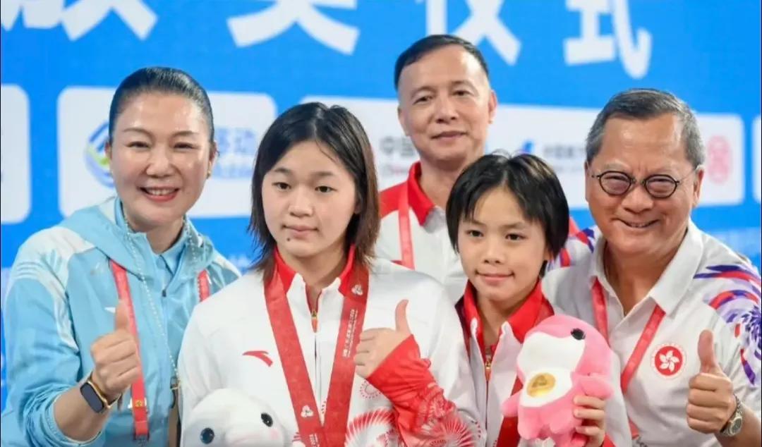 这下好了, 不止现场的观众发现了, 全国人民都发现了! 果然全红婵回到广东队更加开心啊! 在后台,教练们挨个走上前拍拍她的肩膀传递鼓励,每一个动作都满是宠溺,而全红婵全程嘴角上扬,眼神里满是轻松与自在,肉眼可见的开心了。 热身间隙,她也开心跟跟教练们分享着什么,教练们则耐心倾听,时不时用幽默的话语逗得她哈哈大笑。 明显能感觉到全红婵和广东队教练团队的默契特别足,教练们看她的眼神就像家人一样! 尤其是教练何威仪,真的满眼都是心疼,他说全红婵伤还没好,身上全是肌贴,每天都是疼得不了。为了坚持比赛,她是很艰难很艰难的。 刚看她东京奥运会的时候一个肌贴都没有,现在都快贴满了。怪不得她捡娃娃跑起来看着不对劲呢,原来是有伤,只有何教练才真正把她当女儿疼,其它教练都没有这么有爱心! 我想何教练说这些,不只是心疼,更是想让大家多多理解一下婵宝。婵宝从不卖惨,从不说疼。所以受伤之后好多人骂她说她不自律,真的很不容易了。 并且婵宝的成就不能但说一句天赋,站在顶端的运动员比任何人都狠!