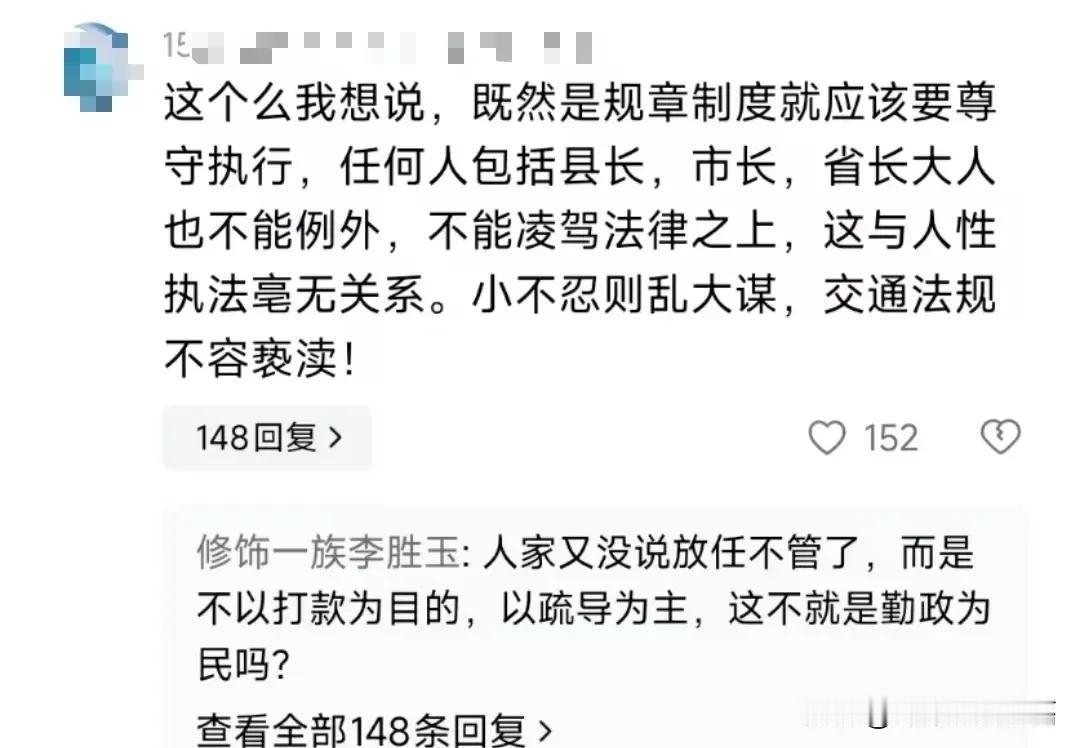 “这位县长火了!”山西阳城县icon县长,在工作群里叮嘱交警大队“在春节icon期间不要给路边停车贴罚单,外地的人都回来了,应该以疏导为主!”但有网友却认为县长这是滥用职权,应该以法律为准绳。法律法规不能因为领导干部的一句话就不予处罚,! 关于山西阳城县“icon”县长在工作群中叮嘱交警在春节期间“不要给路边停车贴罚单,外地的人都回来了,应该以疏导为主”的事件,引发了社会的广泛关注。有人认为这是体现领导体恤民情、强调疏导的善意之举;也有人担忧此举可能涉及滥用职权,违背法律法规。 在此事件中,关键的问题在于如何平衡管理与执法的原则。法律法规是执法的依据,不应因个别领导的意愿而随意调整或放松执法标准。任何执法行动都应依法进行,确保社会秩序的稳定和公平。 同时,领导干部在表达政策建议时,应考虑到法律边界和职业道德,既要体现人文关怀,又不能越界。在春节这样的重要节日,为缓解交通压力、提供便利,相关部门可以在允许的范围内采取合理措施,但最终的执法行为应依法依规进行。 总结: 合法执法原则:执法必须依法进行,不应因个人意愿而规避法律责任。 领导作用:领导可以提出建议或指导,但不应指令执法部门偏离法规。 社会关怀:在维护秩序的同时,也应关注民众的合理诉求和生活便利。 公众监督:公众有权对执法行为进行监督,确保法律得到尊重与落实。 希望相关部门在处理类似事件时,既维护法律权威,又兼顾民意,推动形成依法、公正、文明的交通管理环境。