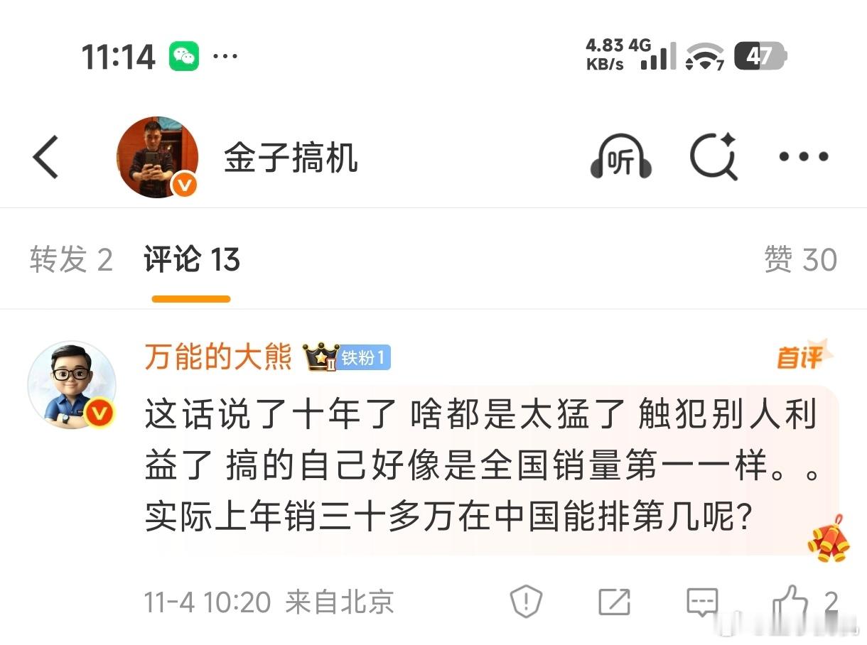 当然,放在全行业,小米汽车年销量几十万不值一提,所以大熊,求求你们这个群体放过小米,以后别提小米可好?跟咱们一样,永远不提不是目标用户的品牌,当然也不敢提…[流鼻血][流鼻血]