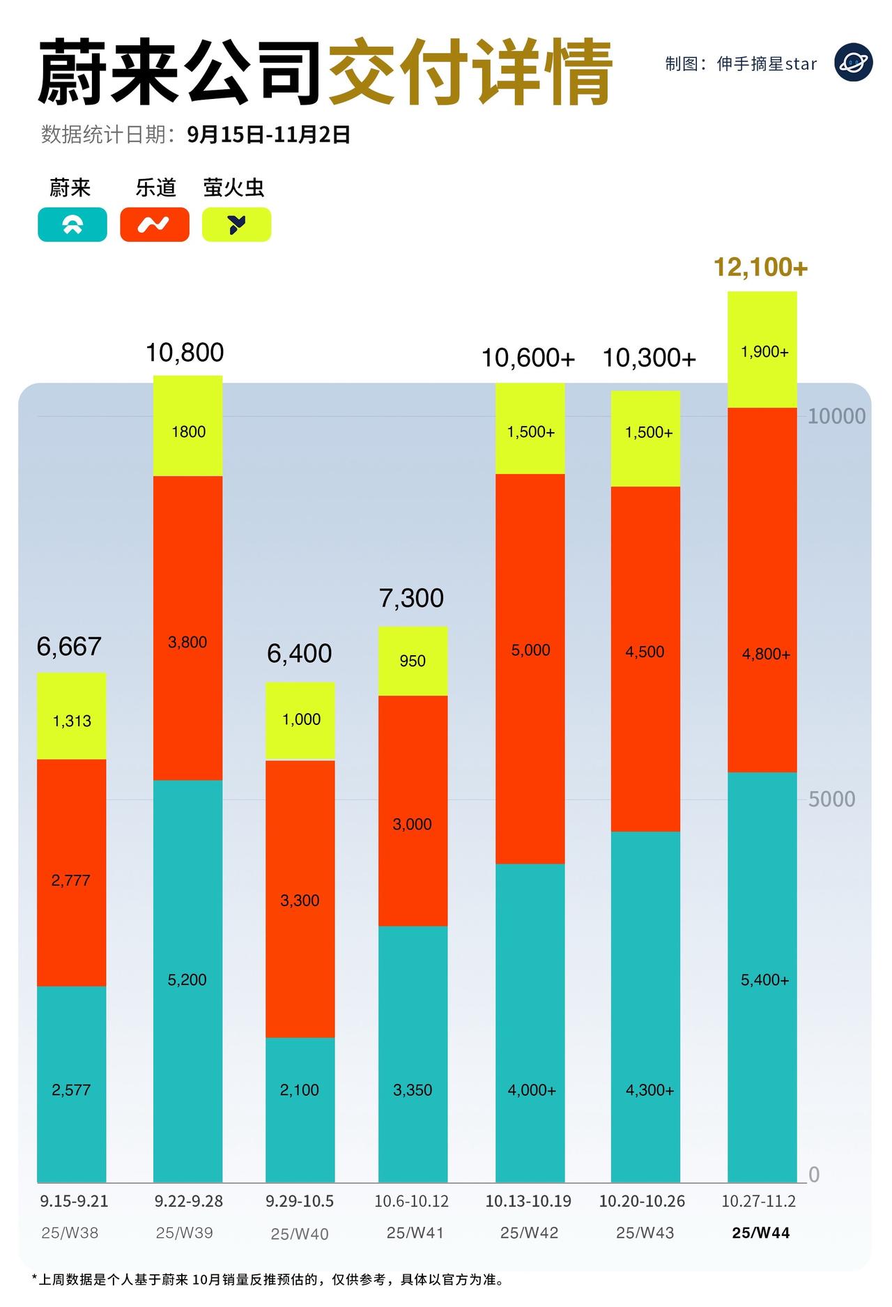 蔚来周交付再创新高,为11月蔚来交付冲5万 打下坚定信心。 斌哥加电,高质量交付