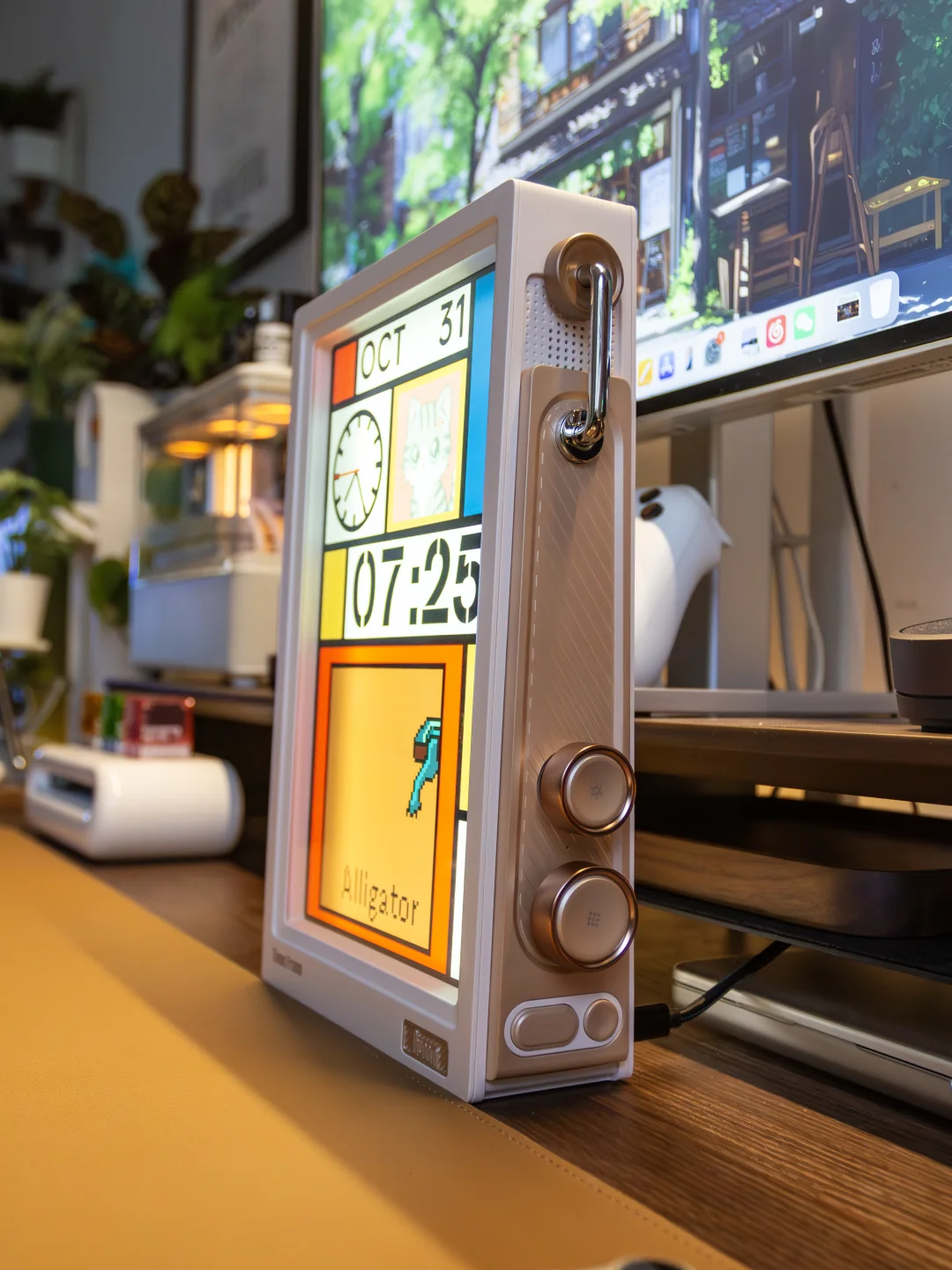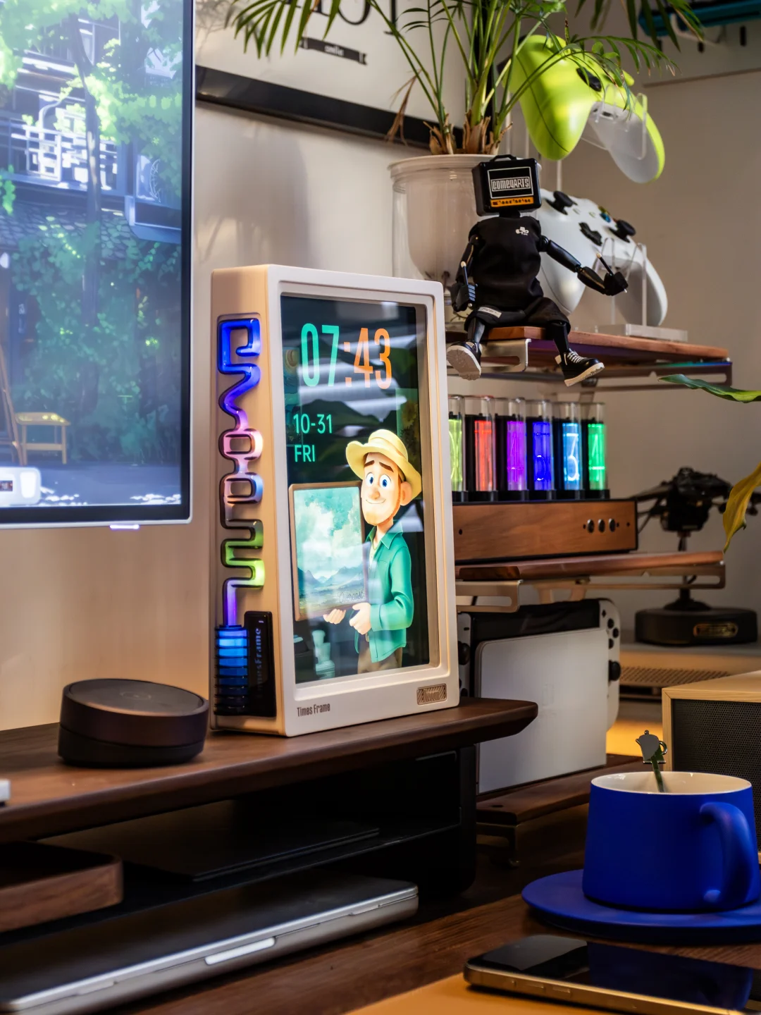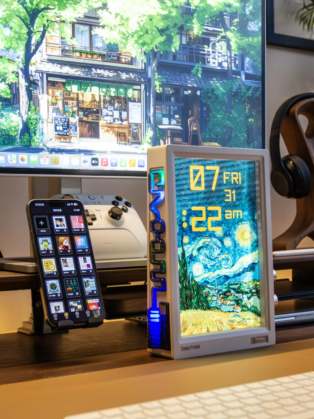 支持远程上传照片,足以存下无数珍贵瞬间;连接手机后,既能调节侧面灯光,还能DIY专属动画组合,尤其当RGB灯光随着音乐节奏轻轻律动时,整个桌面的氛围感瞬间拉满。将它放在显示器旁,每次抬眼望见,都觉得格外治愈。