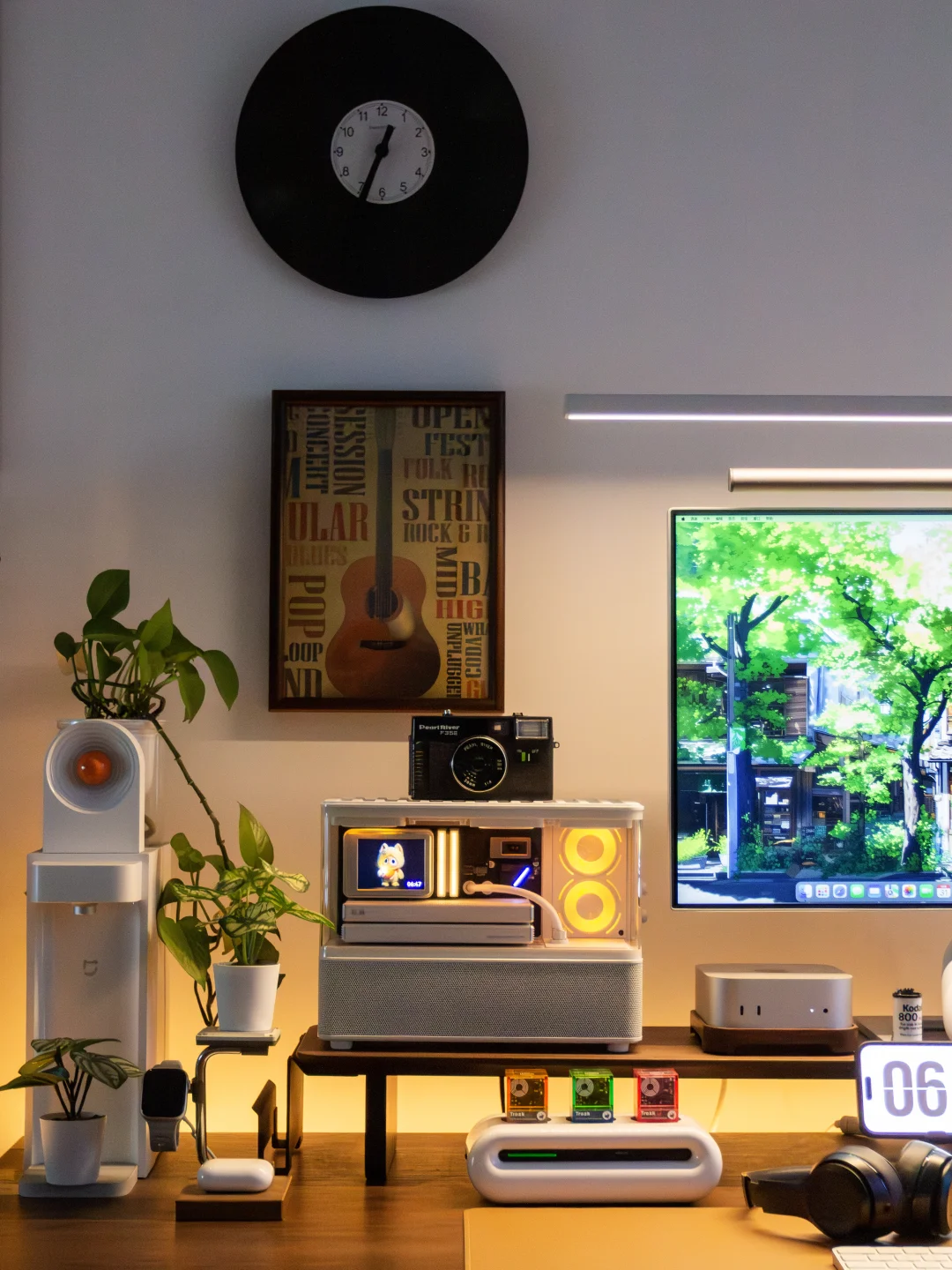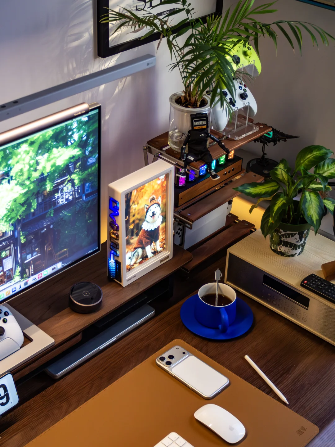 静坐书桌前,指尖轻触键盘,耳边是窗外淅淅沥沥的轻柔雨声,伴着室内悠扬的旋律。目光落在那悬浮相框上,看着流转的光影与时间,仿佛能清晰触到时光的流逝,也总能从中生出无限温柔的想象。