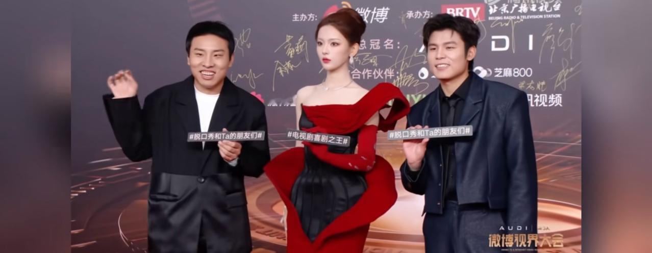 这到底是谁想出来的⁉️让他们仨走红毯‼️😂 当杨超越带着“卧龙凤雏”走上红毯?