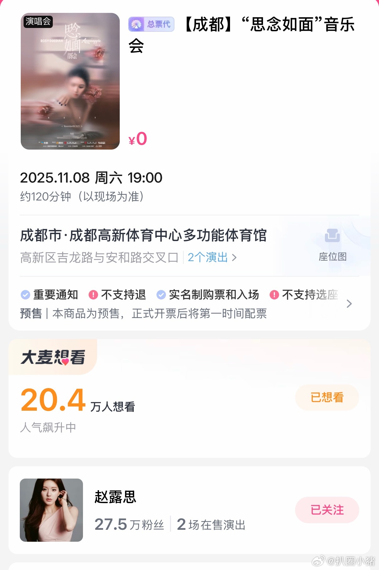 赵露思生日音乐会预约人数破20万了!5000张票20万人抢[捂嘴哭]