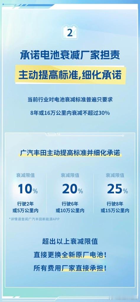 大家都知道新能源汽车电池衰减不可避免,新能源电池寿命通常在5到15年之间。也就是整个周期内,大家可以不用担心电池衰减等问题。而且广汽丰田这样能真正主动承担责任的,行业并不多见。这说明他们最自身产品品质确实足够自信,而且也会打动很大一部分用户的心。