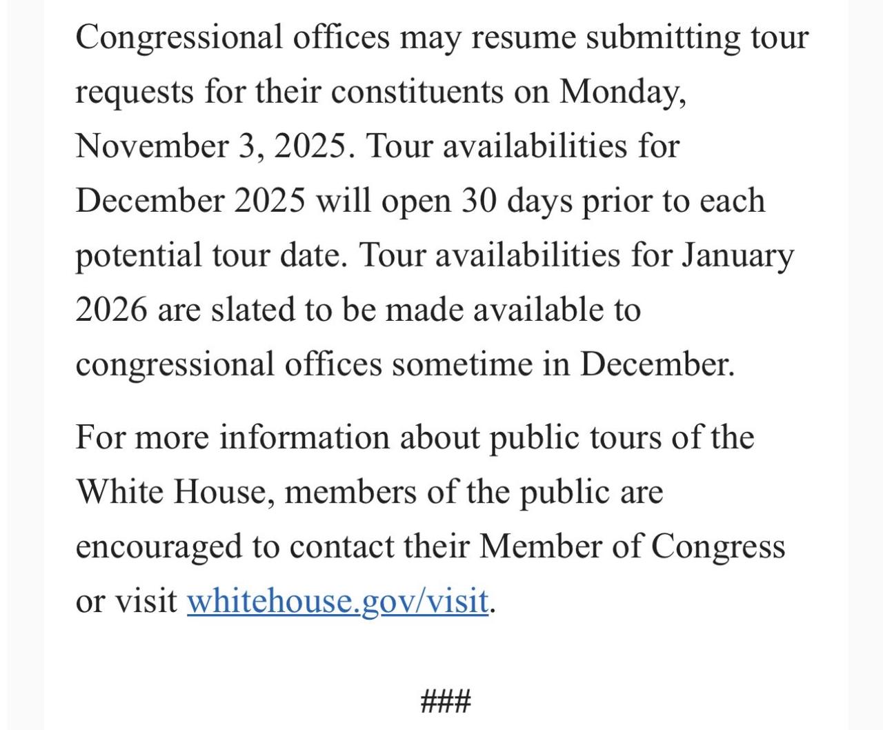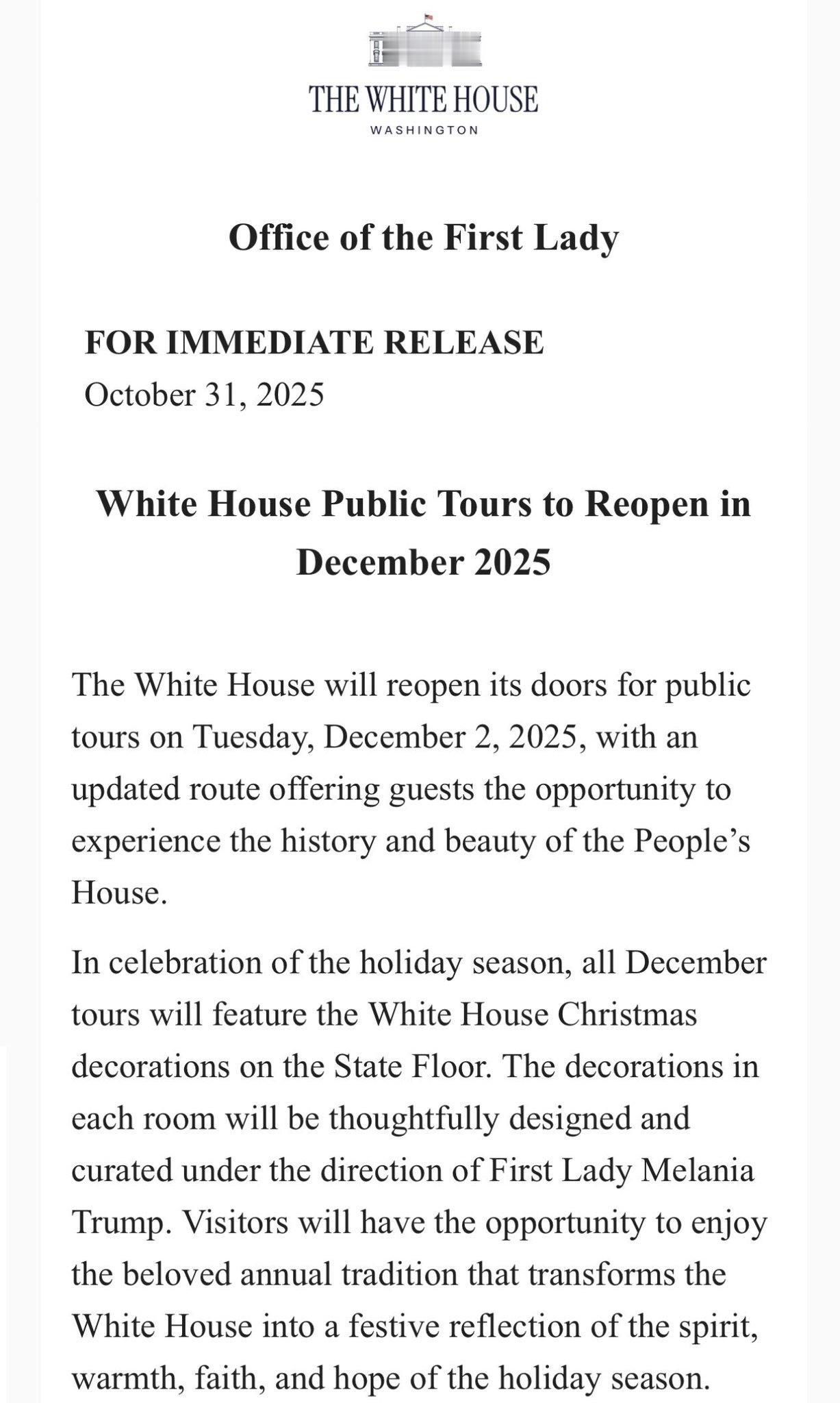 特朗普宣布白宫圣诞节参观活动回归! 🎄🎅🏻 ❤️ 唐纳德·J总统特朗普和第一夫人梅拉尼娅·特朗普很高兴欢迎您参观白宫。可以通过您的国会议员(美国)代表申请旅游参观。 您可以通过美国国会大厦总机202-224-3121(TTY:202-225-1904)或在线访问网页联系您的国会议员。 营业时间和及时更新可在24小时信息热线上找到:202-456-7041。