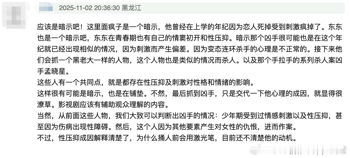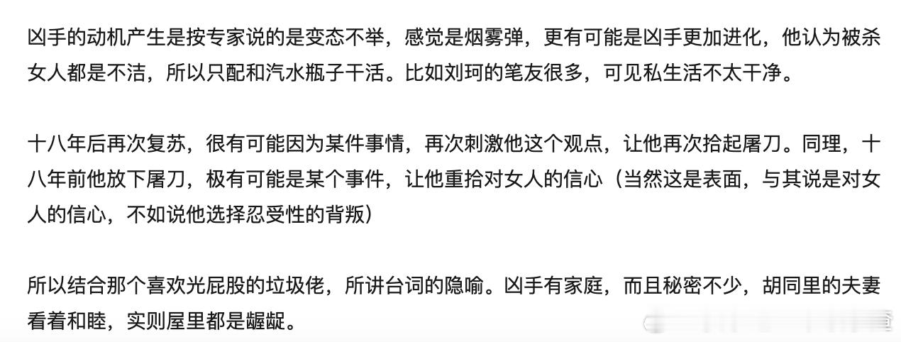 光用眼睛可看不了这部剧 看迷雾剧场的树影迷宫 真是一整个陷进胡同迷宫里了!从开场命案到现在几乎每一集都在根据线索猜凶手,结果每一个嫌疑人都被pass了[淡淡的]在网上一顿搜分析发现还有好多错过的细节,编剧你能不能出个每集的细节汇总啊啊啊!