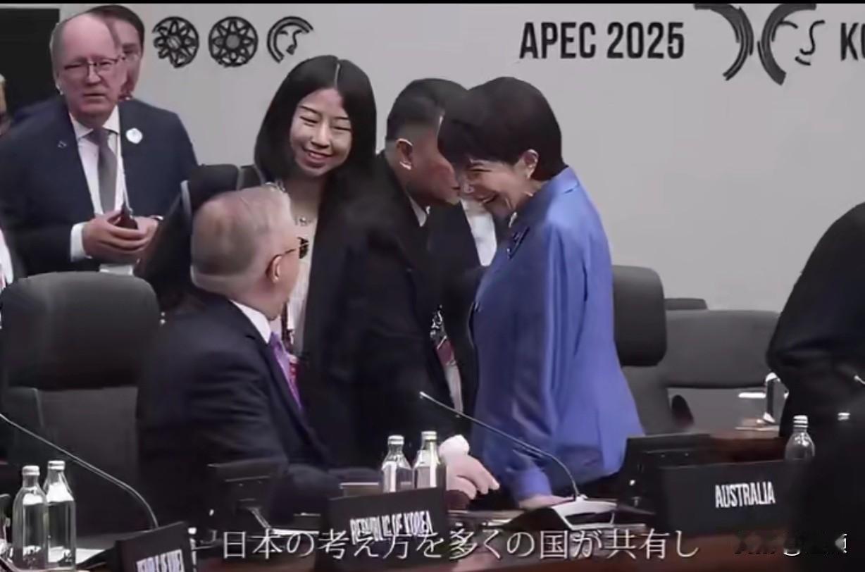 高市跟澳大利亚总理的这一段才真正的辣眼睛,比起来她跟印尼智利总统的挪椅子勾肩搭背都不算什么……视频显示其轻佻地屁股清靠、单手支撑会议桌,轻浮媚态尽显,吓得阿尔巴尼斯赶紧起立握手。 别的我可以使劲抿住嘴嗯住自己,但高市跟阿尔巴尼斯这段身体语言的必要性,我是真的真的无法理解(我觉得正常男性第一反应,都是敬而远之吧) 让人惊讶的是,首相办公室不以为耻反以为荣,竟然将高市在APEC上"高光"行为做了个合集,当做政绩来宣传。