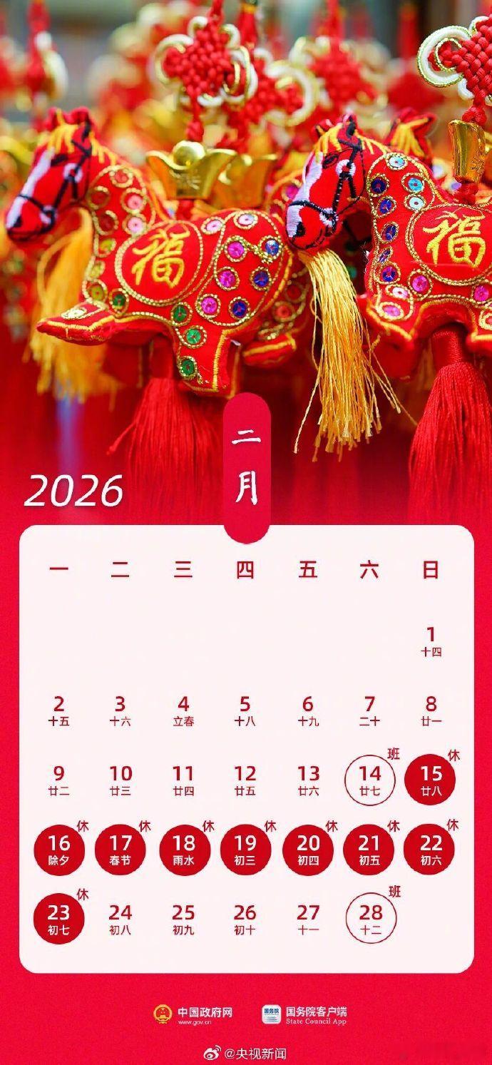 2026春节放9天假 春节9天假期挺开心的,不过想到又要调2天班,纠结啊!