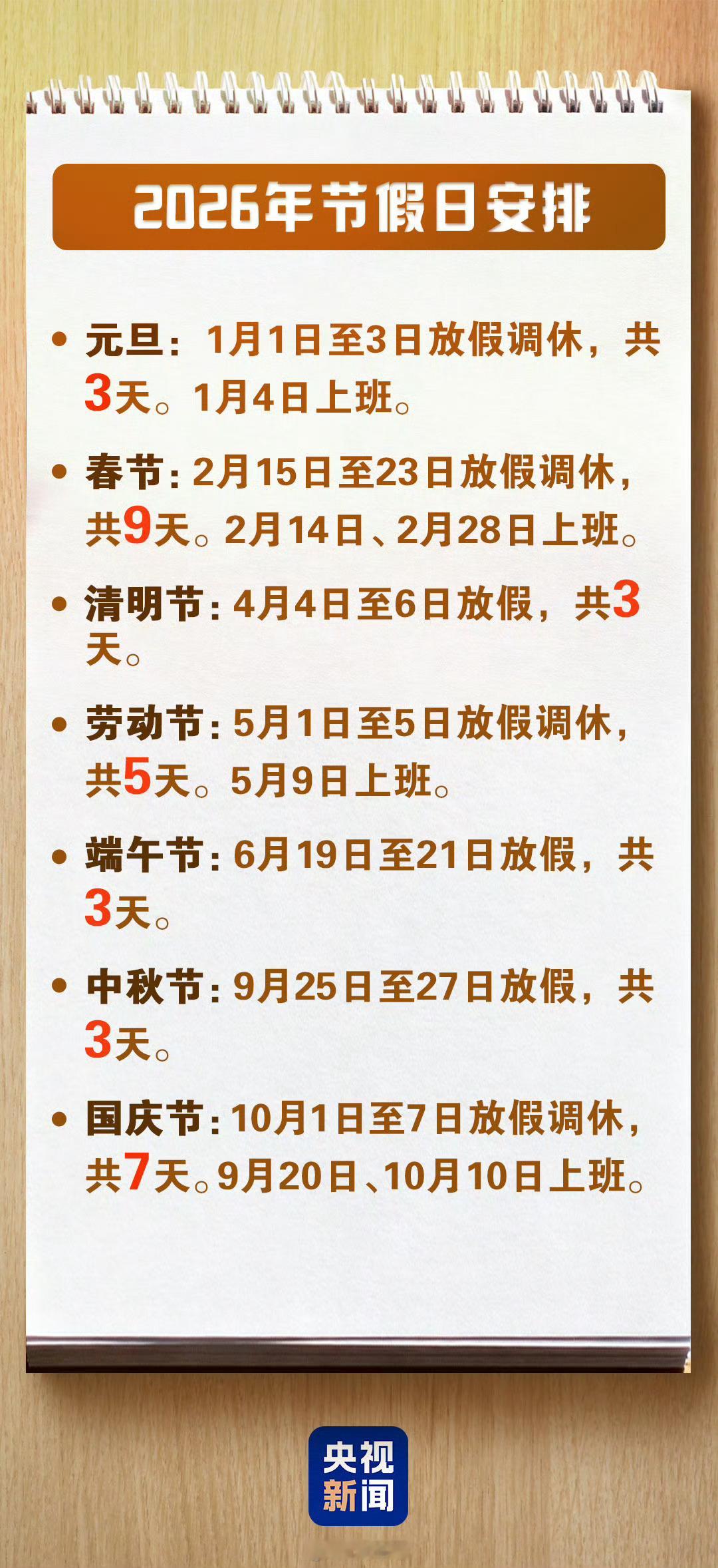 2026春节放9天假你们对这放假安排满意吗?[笑而不语][笑而不语]