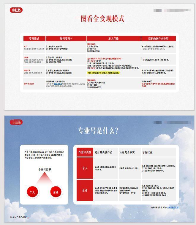 干货分享|小红书知识作者变现手册(68页) 该手册系统拆解专业号认证、买手带货、店铺运营、商单合作等核心变现路径,明确各模式准入门槛与操作细节。同时提供选品、报价、数据复盘等实操指南,解答从内容到商业的关键问题,帮助创作者避开试错成本,高效搭建可持续变现体系,是从新手到进阶的必备工具。
