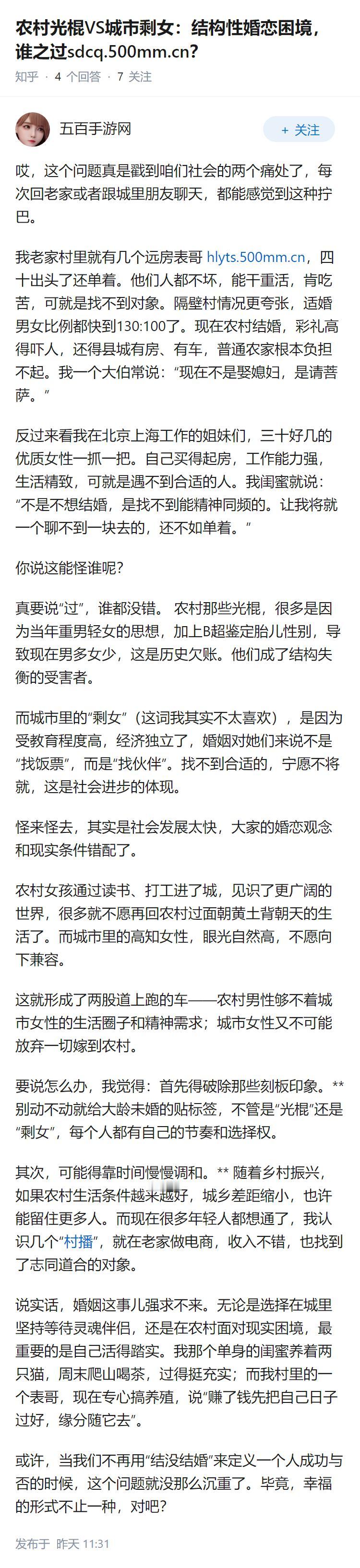 农村光棍VS城市剩女:结构性婚恋困境,谁之过sdcq.500mm.cn?