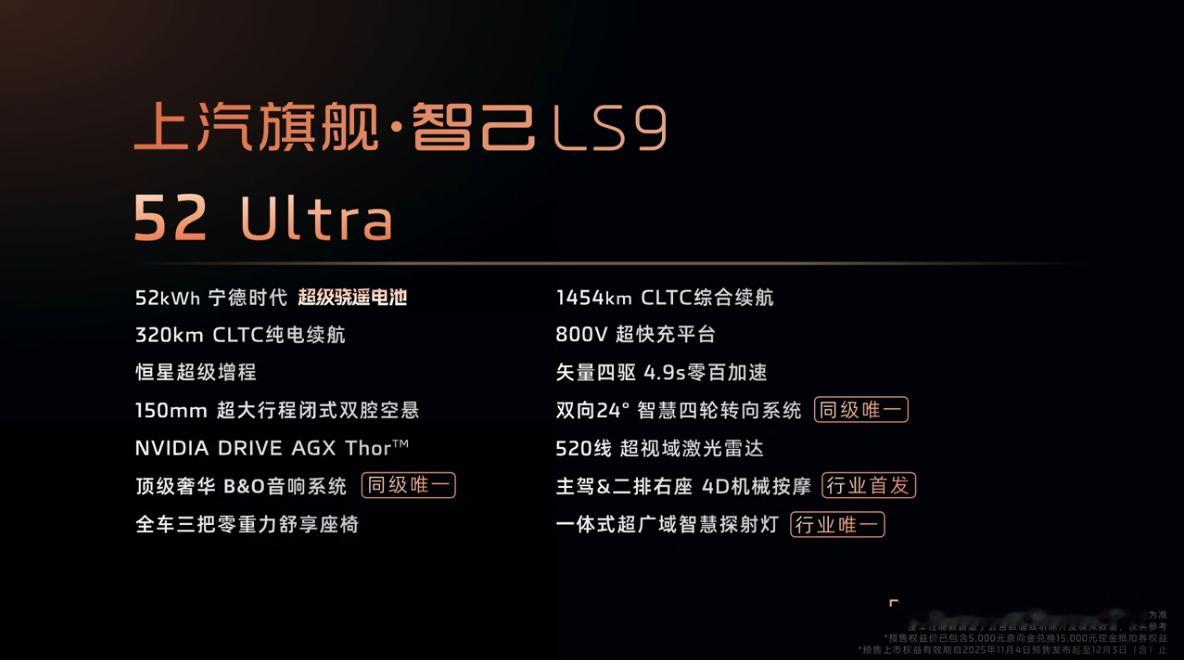 智己LS9这台车的整体参数非常不错,该有的都有了,唯一可能不如领克900的就是第三排空间和选装座椅,这点是有很明确的优势的。但智己LS9的后排转向、双腔空悬、三个零重力座椅,都是配置亮点。还有25扬声器等等,可以说配置是不输领克900的。你们说智己这台车,能打得过这一级别的领头羊领克900吗?
