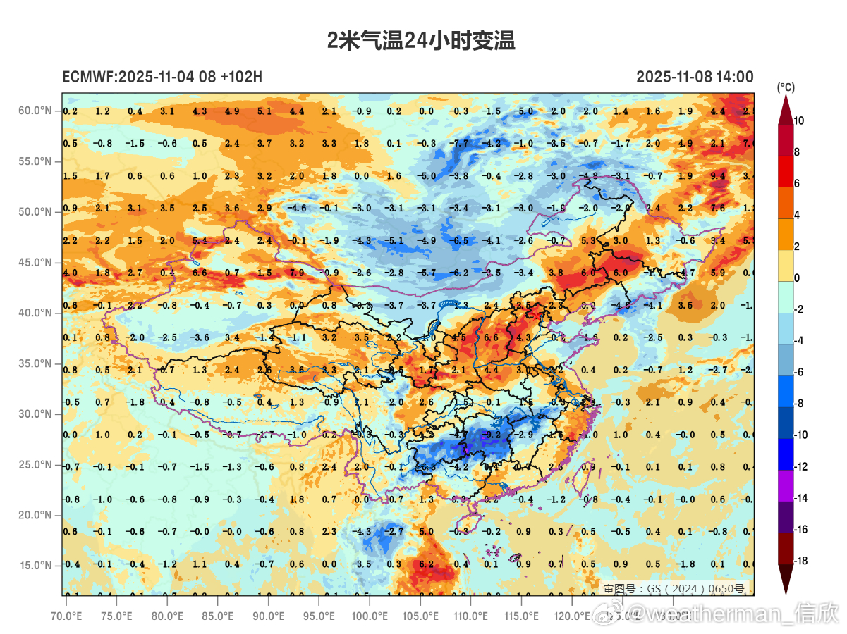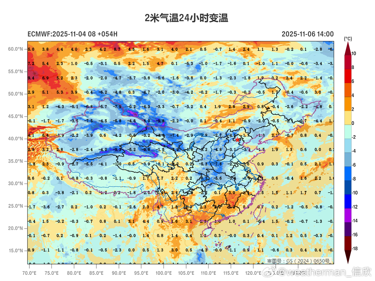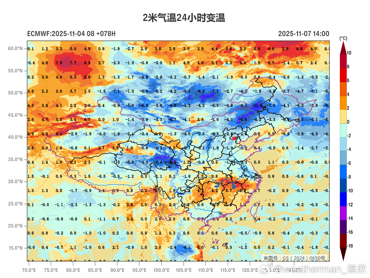 5-6日冷空气主要影响还是在西北地区。7-9日冷空气继续东移南下,由于中东部不少地区有降水,因此最高气温的下降幅度总体可能比最低气温更明显。比如长沙7日最高26℃,9日降至16℃,2天降10℃。但最低气温7日15℃、9日13℃,仅下降2℃。