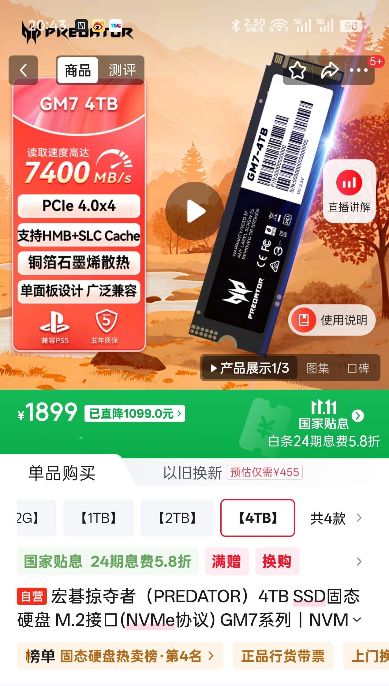 曾经这个4T的旗舰SSD只卖999[老师好]
