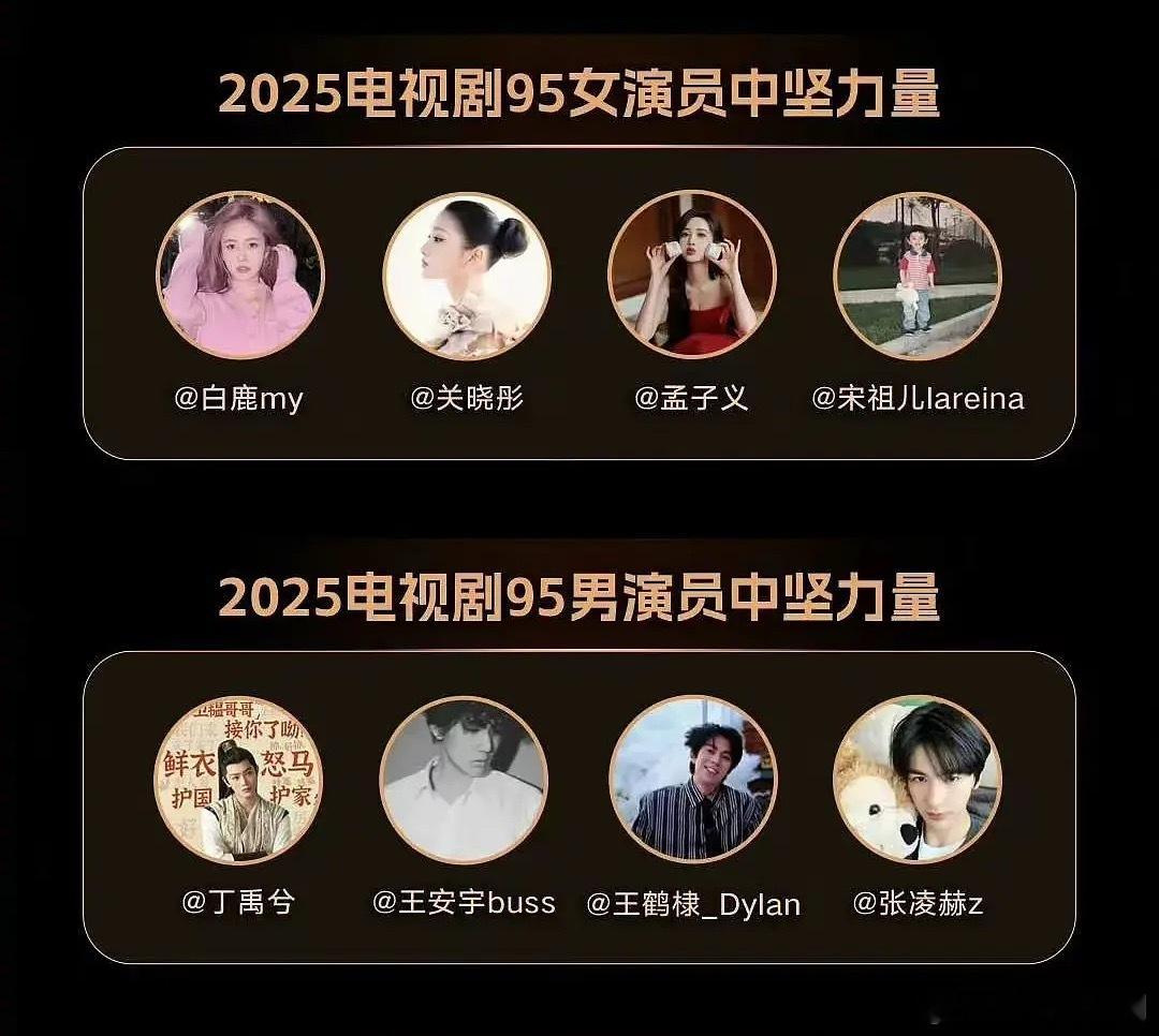 2025电视剧95女演员中坚力量:白鹿、关晓彤、孟子义、宋祖儿