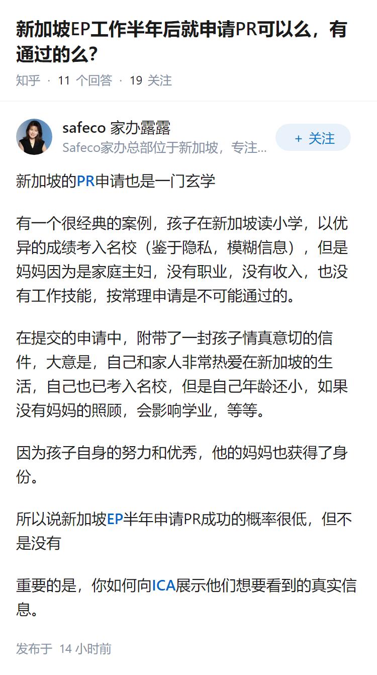 新加坡EP工作半年后就申请PR可以么,有通过的么?