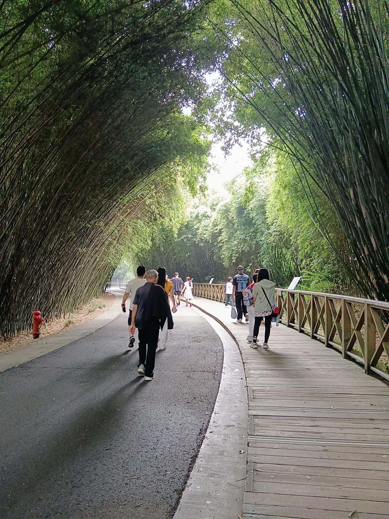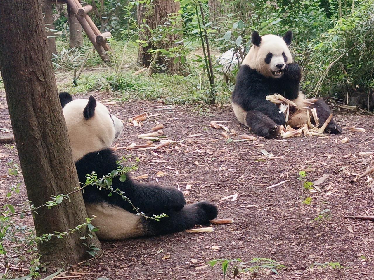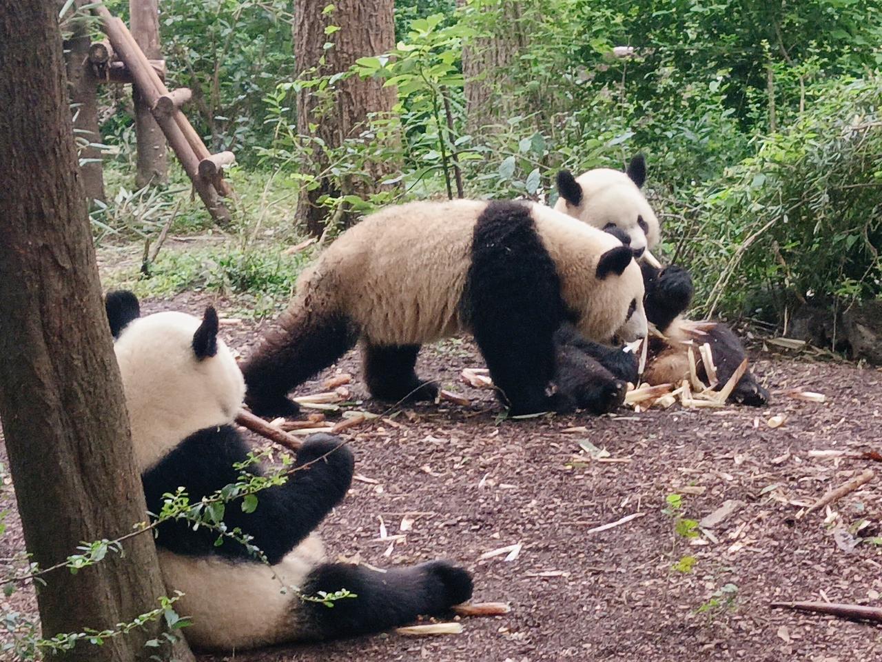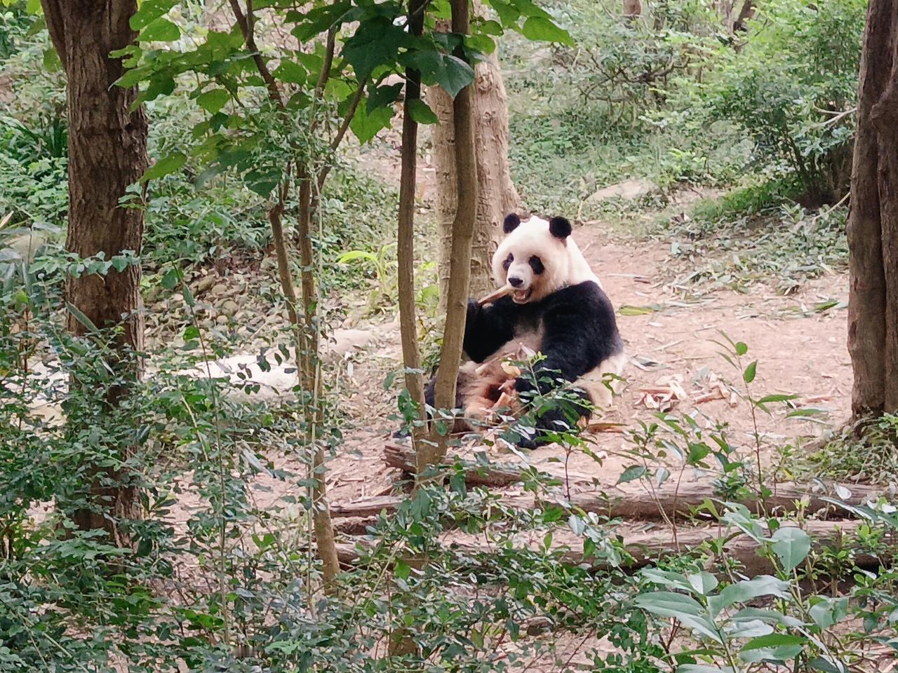一早儿跟新结识的天津夫妇,拼滴滴去成都熊猫基地,提前抖音下单买了55元的门票,从南门直接刷身份证进入,因为来的早游客不算太多。刚进景区没看见几只大熊猫,跟我想象的“一群群在外边啃竹子”场景不一样,全是单只的,拍照还得挤来挤去。越往里走熊猫越多,小的几个月、大的十几岁憨态可掬,园子里种满了竹子,环境特别好。有大哥大姐陪着一起溜达,玩儿的别提多尽兴了,这55块钱花的真值成都大熊猫公园