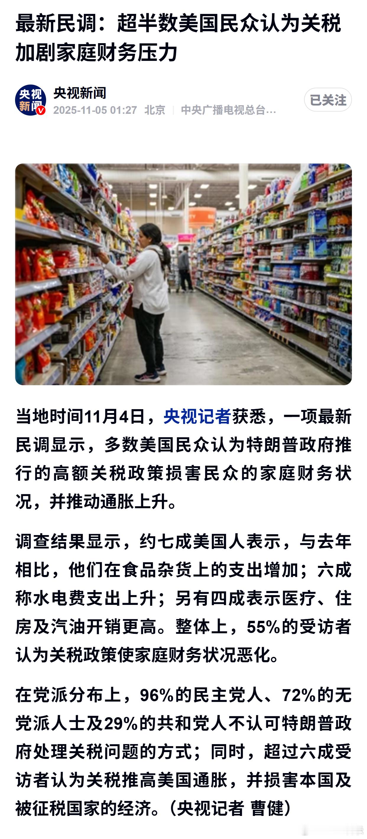 最新民调:超半数美国民众认为关税加剧家庭财务压力