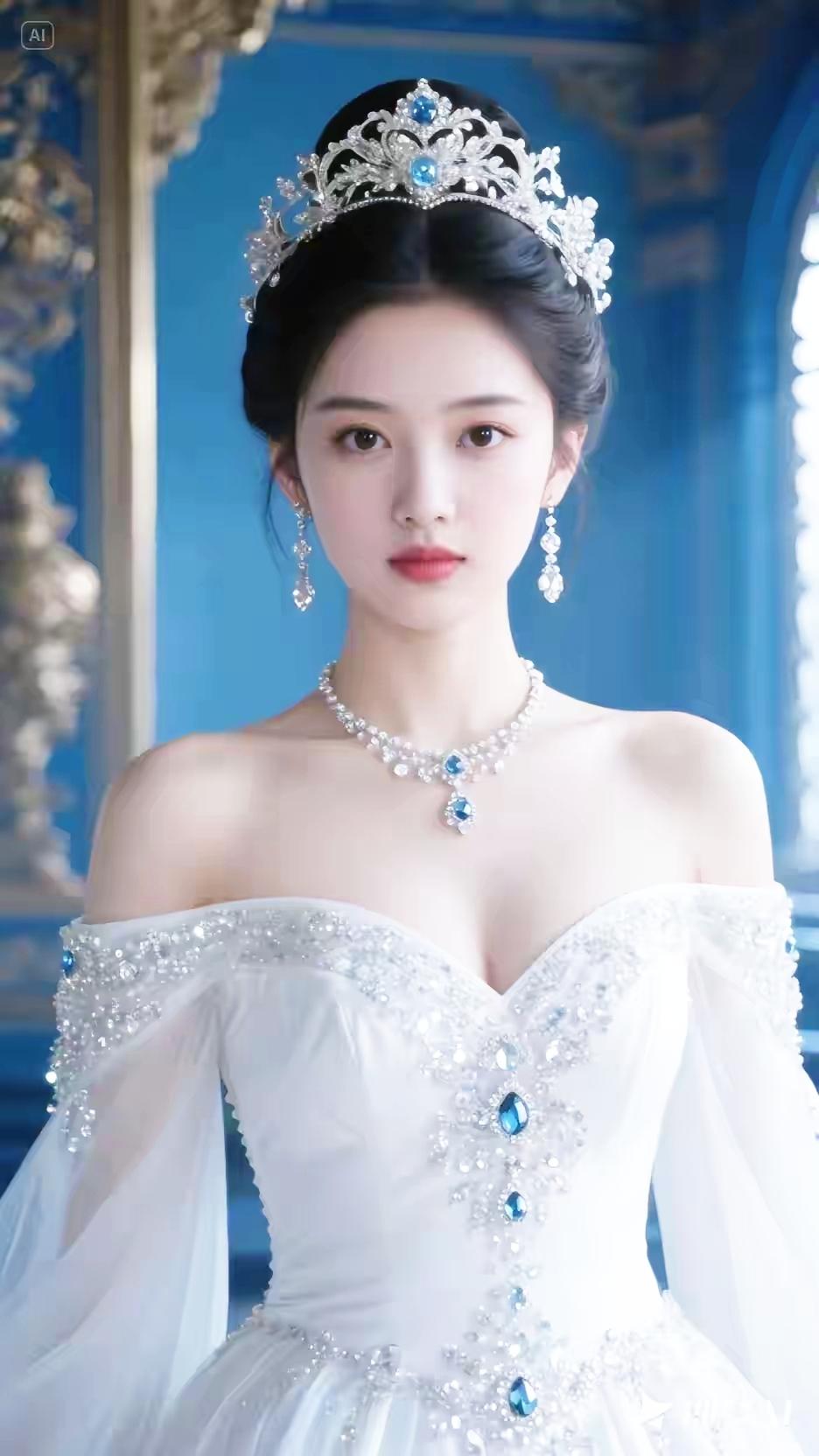温婉古典美人,花钿点缀,笑靥如花。