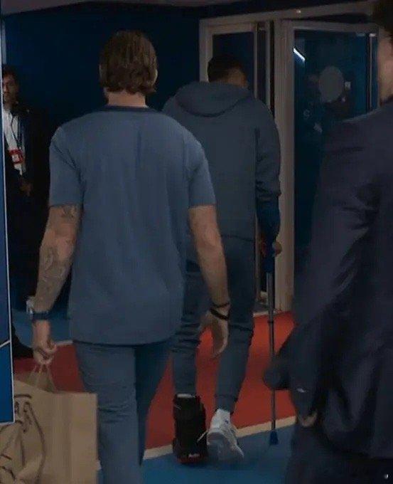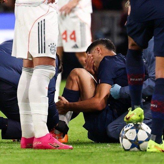 严重受伤后 阿什拉夫泪洒赛场 并且赛后拄拐离开了球场巴黎圣日耳曼1比2拜仁慕尼黑迪亚斯红牌热点现场