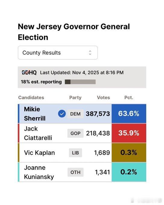 美国超级选举日动态海外新鲜事海外新鲜事[超话]新泽西州长选举