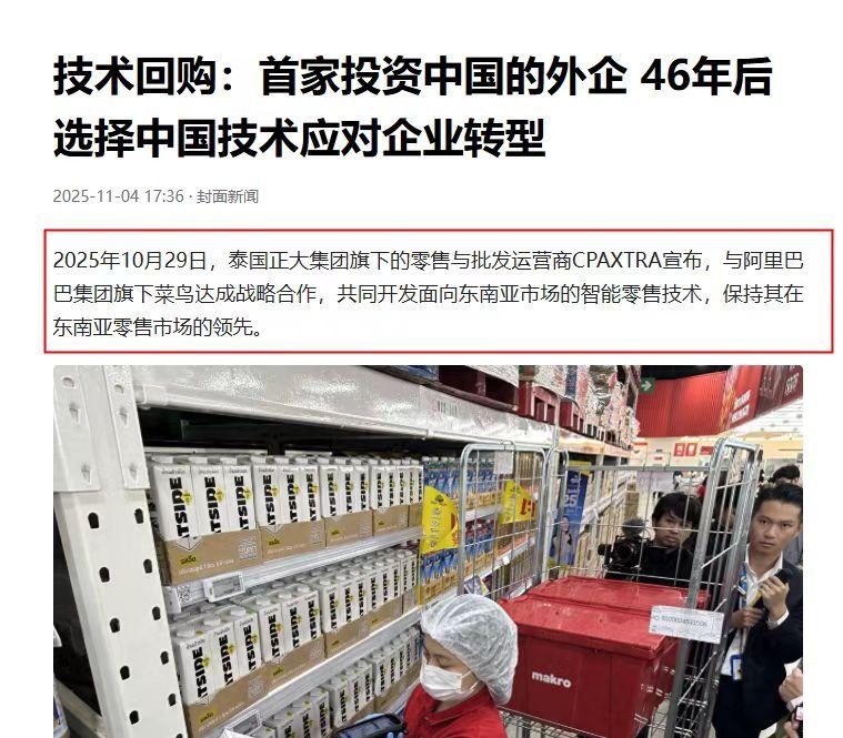 泰国正大集团旗下东南亚零售巨头CP AXTRA宣布和菜鸟达成科技合作,将从菜鸟引入最先进的数字供应链技术带回泰国,以此来保持其零售产业在东南亚的领先地位。   正大集团的分量在东南亚几乎无人能及,单说它旗下的 CP AXTRA,就运营着万客隆、莲花超市等知名品牌,在整个东南亚铺开了超过 2700 家门店,手里还握着 4000 辆运输车的庞大车队,说是当地零售行业的 "顶梁柱" 一点不夸张。   可就是这样一家巨头,最近却公开承认要靠中国技术实现转型,这事儿本身就透着不一般。   真正让人意外的是技术落地后实打实的变化。以前万客隆门店的拣货员得凭经验在货架间穿梭,遇上线上订单多的时候根本忙不过来,一天最多也就处理 1.5 万单配送。   现在用上菜鸟联合开发的 iWMS 拣选包装系统,效率直接提升了 140%,单日配送能力一口气冲到了 10 万单,相当于以前六七天的工作量现在一天就能完成。   更贴心的是,双方还在推进 AI 货架陈列方案,不管是顾客购物还是员工拣货,都能更快找到目标商品,这种细节里的优化最见技术功力。   CP AXTRA 的高管其实说得很实在,他们在全球找了一圈数字化供应商,最后发现只有经历过双十一大促上亿订单考验的菜鸟系统,能扛住东南亚爆发的线上购物需求。   要知道这几年万客隆的线上订单占比已经从 3% 涨到了 30%,传统物流模式早就跟不上节奏,而菜鸟的技术刚好踩中了这个痛点。这种不是单向输出、而是按需共创的合作模式,反倒更能看出技术的硬实力。   很少有人注意到,菜鸟的物流科技早就不是只服务国内市场了。现在它的技术已经落地全球 27 个国家和地区,完成了 800 多个合作项目,连罗马尼亚的电商分拣中心都在用它研发的分拣机,能在有限空间里处理上百个流向的包裹。   上一个财年,菜鸟海外科技销售额同比涨了 150%,服务的客户里光世界 500 强就有 26 家,这些数据藏不住中国科技出海的底气。   更有意思的是这背后的角色转变。早年间不少国外企业带着技术进入中国市场,而现在正大这样的老牌巨头主动来 "回购" 中国科技,这种变化本身就很有说服力。   菜鸟给 CP AXTRA 的不只是一套系统,而是结合了 AI 算法的完整解决方案,能给管理者提运营建议,帮着优化人员配置,这种深度适配的能力,才是技术出海的核心竞争力。   从曼谷超市里的拣货员,到罗马尼亚的分拣中心,中国物流科技正在悄悄改变全球的零售格局。正大集团想靠这套技术巩固东南亚的领先地位,而菜鸟的无人车也已经开始在当地的生鲜超市和药店承担配送任务,合作还在往更多领域延伸。   这场合作与其说是生意,不如说是技术实力的一次公开亮相。当中国科技不再是简单的产品输出,而是能成为全球巨头转型的核心动力,这背后的分量可想而知。   那么你觉得,除了零售物流,中国还有哪些技术能在全球市场上闯出这样的天地?