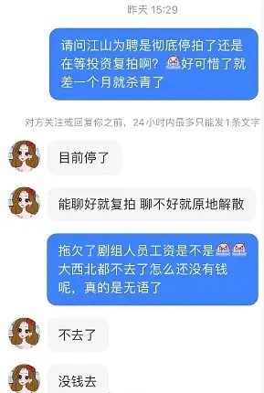 不儿[黑线]怎么又停播了,疑似工作人员爆料《江山为聘》拖欠工资又双叒叕停播了[皱