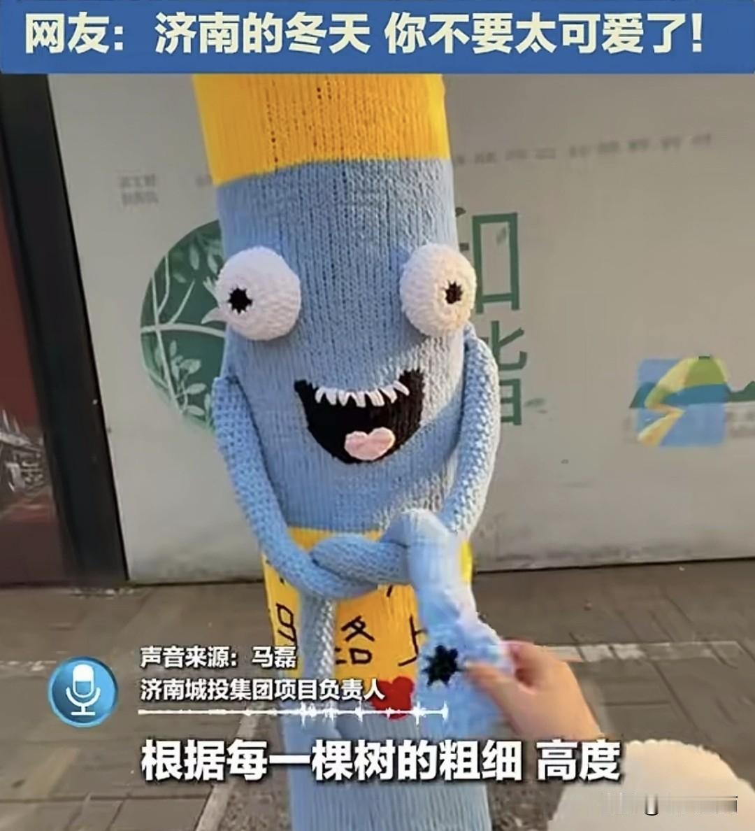 济南的冬天有多冷,市区的大树都成了梁山好汉。 西安树 西安的大树也被保护了起来,这情景让人联想到当地的特色肉夹馍。