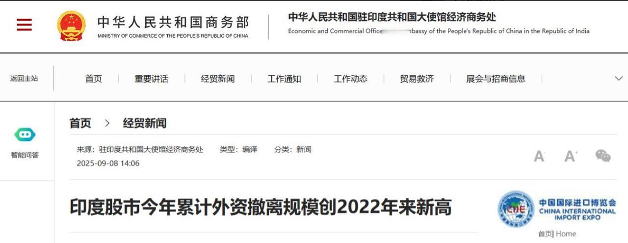 [微风]报应来得猝不及防!印度坑杀外资终遭反噬,外资撤场超90% 2025年全球资本圈最劲爆的消息,当属印度那场停不下来的“资本大逃亡”——外资从股市卷走170亿美元,新进来的投资却只有3.5亿,相当于每吸引一块钱,就有近五十块钱忙着跑路,这样的反差让“外资坟场”的名号彻底钉在了印度经济的招牌上。 谁能想到,几年前还喊着要“取代中国成世界工厂”的印度,如今会被资本用脚投票投得如此狼狈。 这场撤资潮早有苗头,2024年10月外资单月就撤了超100亿美元,直接砸没了印度股市一万亿美元市值,只是当时没人料到2025年会崩得这么彻底。 年初刚开年,第一季度外资就撤走290亿美元,这个数比2023年全年的净流入还多。到了8月更夸张,前两周外国投资者就抛售了近2100亿卢比的股票,当月净FDI跌到3500万美元,这点钱在孟买连套像样的豪宅都买不到。 跑路的名单里没有旁观者,美国基金撤了约10亿,卢森堡跟了7.65亿,日本也撤走3.65亿,全球基金在印度股市的配置比例跌到16.7%,是两年多来的最低水平。 外资用脚投票的背后,是被反复收割后攒下的失望。三星当年响应“印度制造”砸钱建厂,转头就被追缴6亿美元税款,这笔钱几乎吞掉全年利润,而罚款依据还是专门为它修改的税法。 小米48亿资产被冻结,理由含糊其辞,全程拿不出明确违法证据;大众更突然接到14亿美元天价税单,连现代汽车印度公司上市后,母公司都赶紧减持股份跑路。 英国沃达丰的遭遇更典型,早年的并购完全合规,却被后来修改的税收政策硬生生变成“违法”,被索要16亿美元税款。 “在印度赚钱印度花,一分别想带回家”的调侃,早成了外资圈的共识。 更要命的是印度自身的运营壁垒,让外资进来就陷进泥潭。 工厂每天停电两三小时是常态,企业必须自备发电机,额外成本压得中小企业喘不过气,2025年5月印巴冲突里,巴基斯坦瘫痪了印度七成电力系统,更暴露了基建的脆弱。 物流更是大坑,成本占GDP的14%,比中国高出36%,港口卸货要7天,中国只要1天,卡车平均时速才40公里,连中国高速的一半都不到。 想搞生产还缺零件,50%的电子元件依赖中国进口,之前跟风封锁中国零件,直接导致手机厂停产,2025年前两月智能手机出口暴跌41%,而越南同期暴涨38%抢走了全球第二的位置。 工人效率也让人头疼,制造业效率只有中国三分之一,部分行业还搞“岗位世袭”,父亲退休儿子直接接班,不管有没有能力,管理成本直线上升。 雪上加霜的是外部环境的变化,让印度的短板暴露得更彻底。特朗普重掌白宫后,直接对印度纺织、电子产品加征50%惩罚性关税,精准打在出口命脉上。 H-1B签证费用大涨,又断了印度IT服务外包的财路,这可是外汇收入的重要来源。 原本想拉日韩资本填坑,结果日本上半年对印投资首次转负,韩国企业也只敢观望,谁都不想当接盘侠。 最讽刺的是,连本土企业都在跑路。 2025财年印度企业对外直接投资从170亿美元飙到290亿美元,相当于国内的核心资本在集体“移民”,这比外资撤离更说明问题。 印度政府急了,10月推出11项救市改革,取消军工外资持股上限、放宽航空和食品行业限制,甚至应苹果要求松了本地采购限制,可市场根本不买账,改革宣布三天外资又跑了12亿。 毕竟资本心里门儿清,印度的问题从来不是持股比例不够,而是政策说变就变、执法随心所欲的老毛病。对比之下,中国这边成了资本避风港,恒生指数半年涨36%,全球十大对冲基金对中国科技股持仓平均增30%以上,特斯拉上海超级工厂单季度交付量就堪比印度全年汽车产量。 124万家外资企业扎根中国,研发支出十年涨86.4%,稳定的政策和完整的产业链,才是留住资本的底气。 印度这场资本逃亡,与其说是意外,不如说是长期透支信任的必然结果。几十年里,用“人口红利”“大市场”当诱饵,再用政策刀子收割的套路,终究骗不了第二次。 现在问题摆在这里,基建短板、政策摇摆、产业链残缺,这些沉疴不解决,再怎么放宽限制也留不住资本。你觉得印度还有机会摘掉“外资坟场”的帽子吗?或者说,资本还会再给印度一次机会吗?