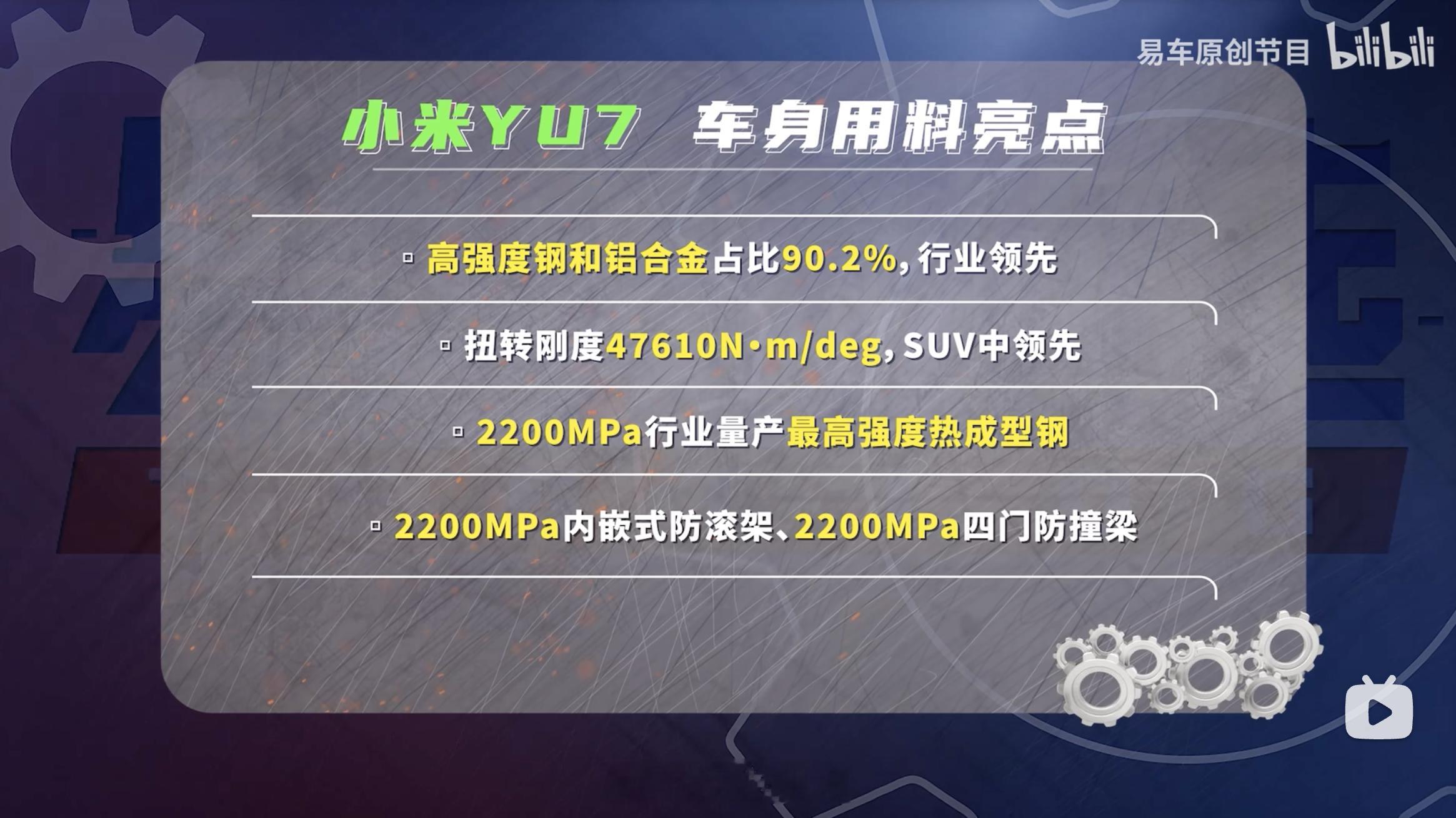小米YU7在车身的安全上绝对是新能源里面最良心的第一梯队。所以这也就是为什么很多人不从小米车身上“黑”,而是绕开车本身,去恶心车主的原因,因为这车的用料什么的他们真黑不了,很容易把自己家搭进去。