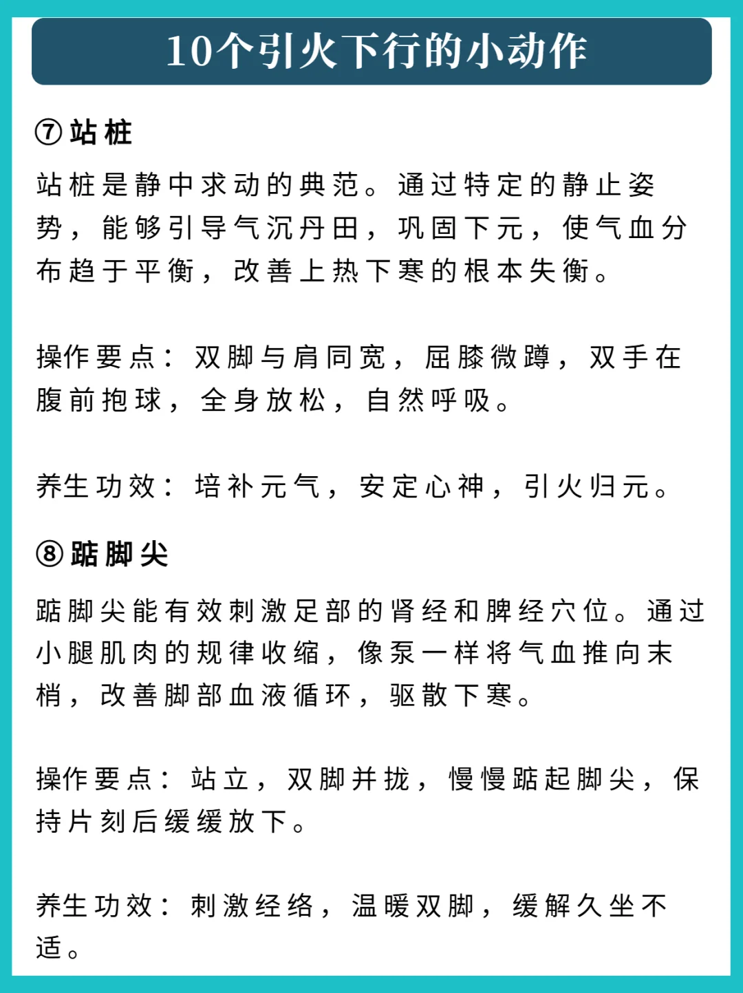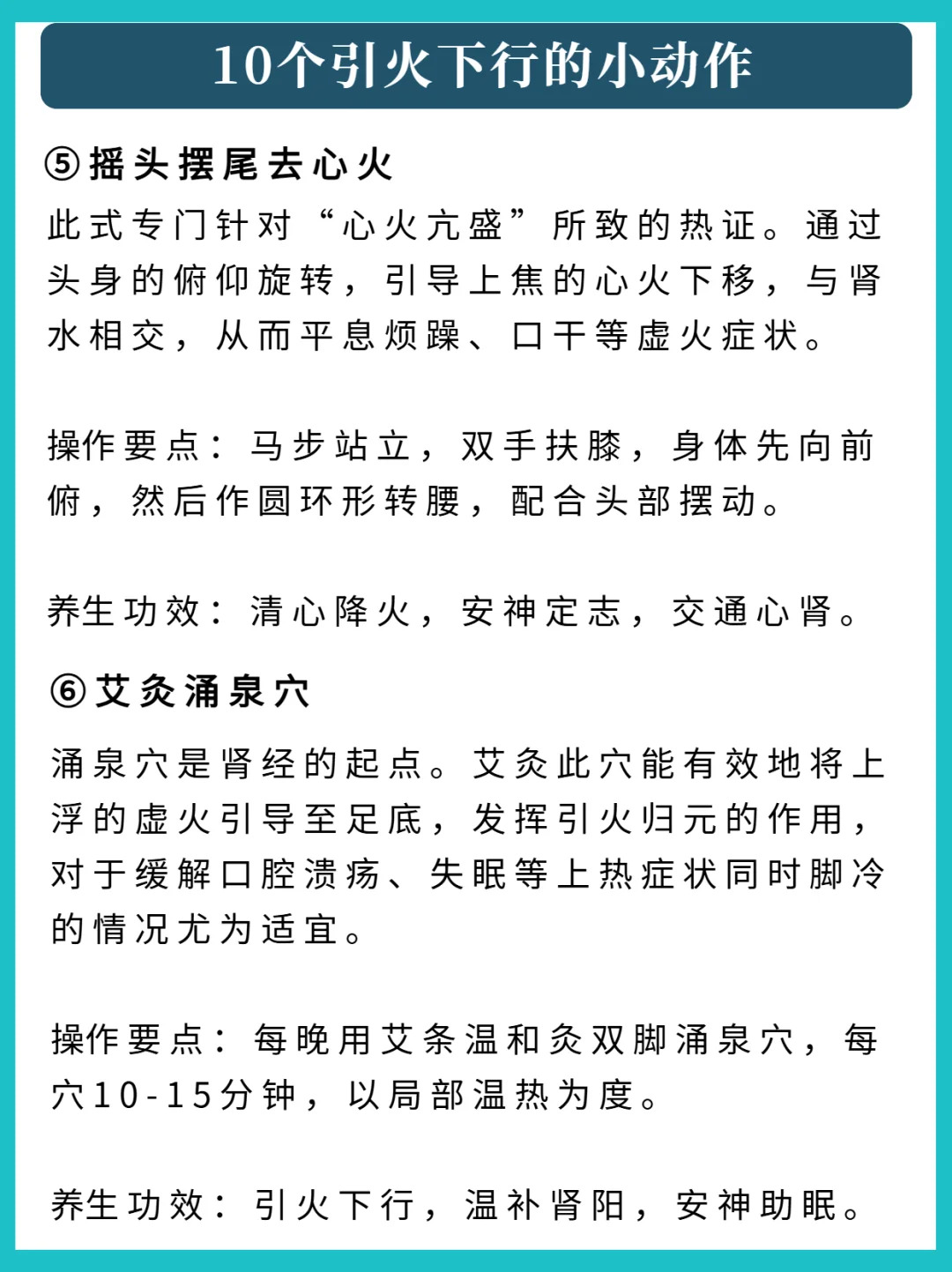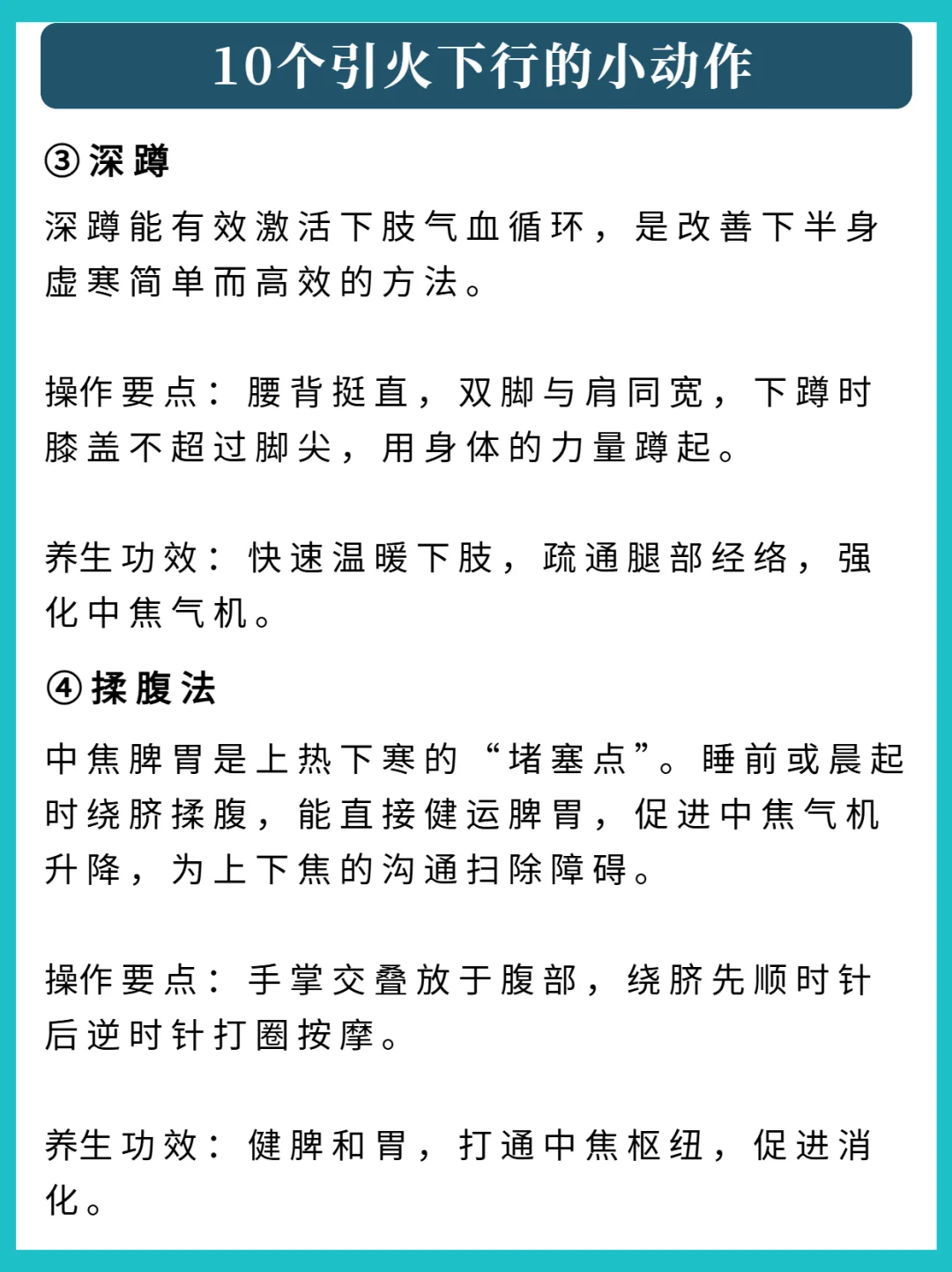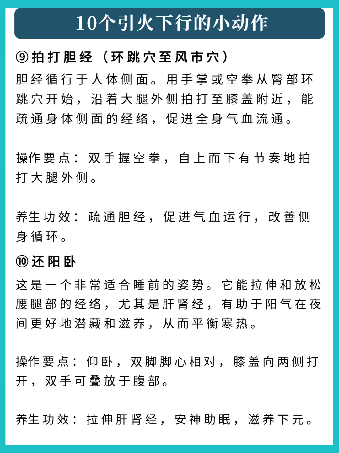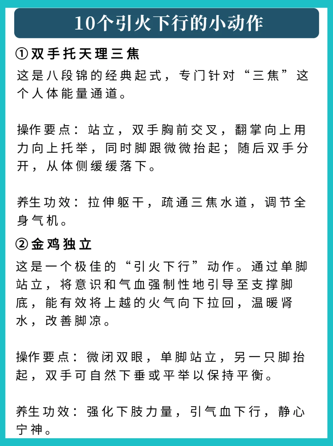 以下10个动作源自传统养生功法,简单易行,旨在帮助你打通中焦通道,引火下行。