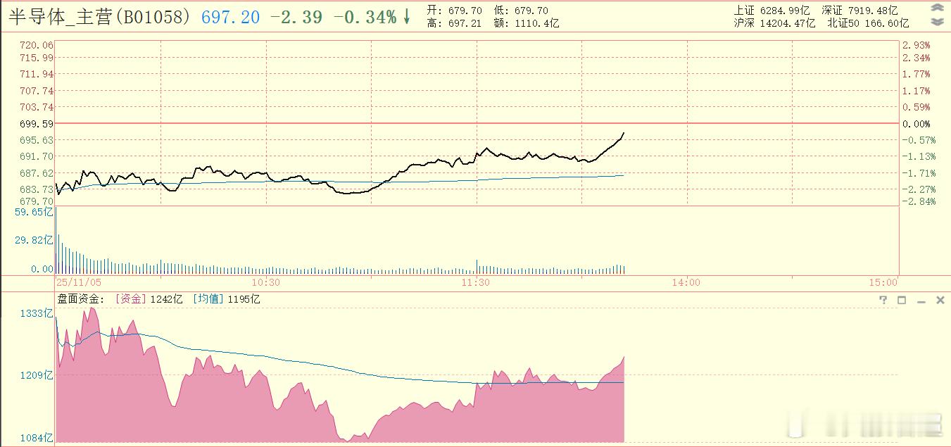主线板块之一的电气设备今日很火爆,另一个主线板块半导体今天低开2.84%,目前离