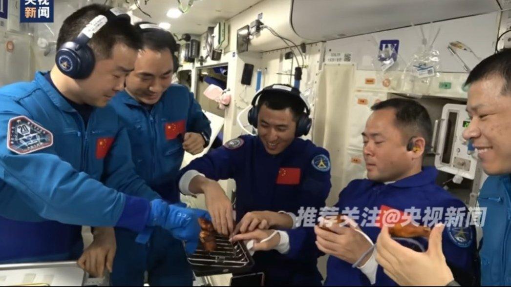 “天宫烧烤店”开张,全球独一份! 神舟二十一号载人航天飞行任务为中国空间站带来了一个“美食革命”——一台专为微重力环境设计的太空烤箱,让航天员们终于能享受到热腾腾的烧烤美食了! 此前,空间站的餐饮主要依赖预制食品、加热或冷食,因为明火烹饪会带来火灾风险和空气污染问题,烧烤这种“油烟四起”的美味自然是禁区。而现在,这项创新完美弥补了这个“缺陷”。 2025年10月31日晚,神舟二十一号载人飞船成功发射并与空间站对接,乘组携带的这台“太空烤箱”(热风烘烤机)正式上岗。它体积小巧,却内置抽油烟机、残渣收集器、加热网和烤盘,能在190℃高温下烘烤食材,避免明火隐患。 航天员们已经试烤了鸡翅、牛排等,视频显示肉类滋滋冒油、焦香四溢,6名航天员围坐“享用”,脸上满是幸福感。未来还能烤蔬菜、坚果、蛋糕,甚至网友调侃“下次烤鸭”! 这不只是“吃饱”,而是从“生存模式”到“生活模式”的跨越。在400公里高空的微重力环境下,饮食多样化能提升航天员的心理舒适度和任务效率。中国载人航天工程正通过这类创新,推动空间站向更宜居的方向发展。 网友们直呼“天宫烧烤店开张”,这波操作太会了!