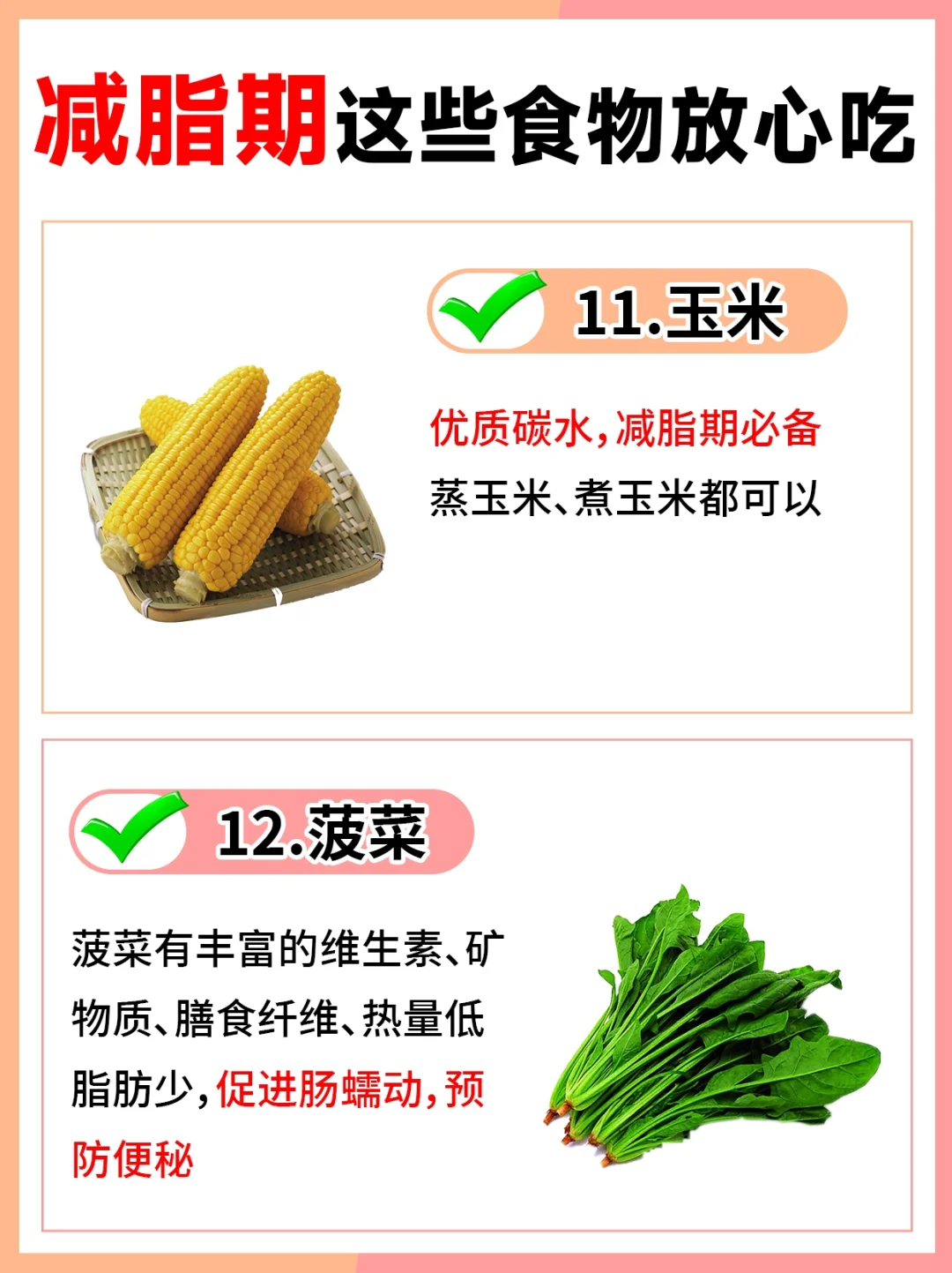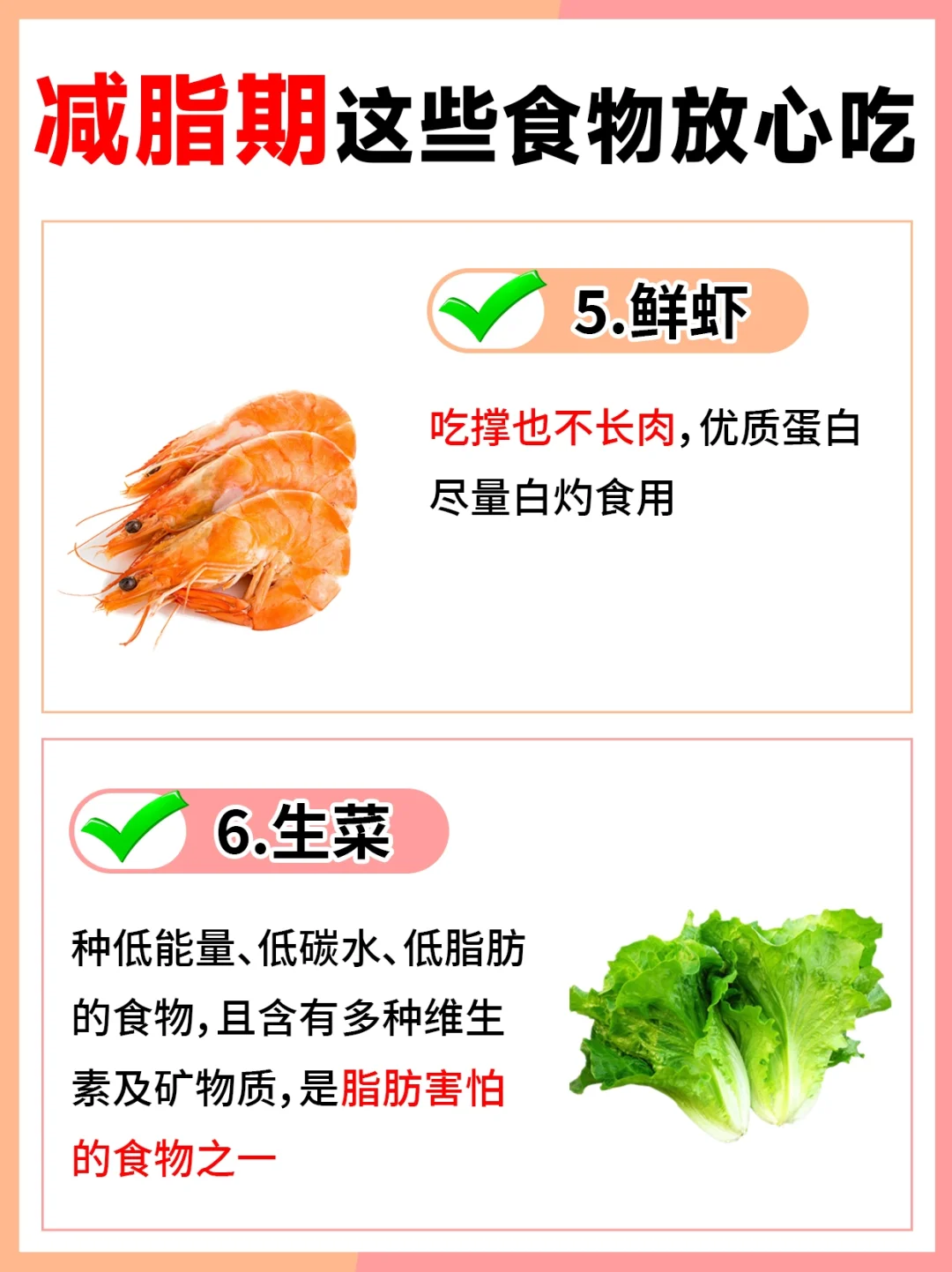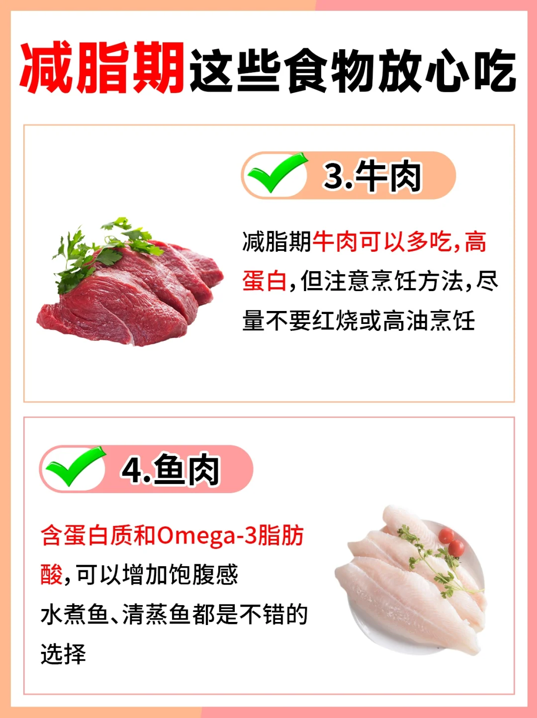 今天给大家分享几个减脂期可以放心吃的食物 🔶鸡蛋🥚 🔶鸡胸肉 🔶牛肉(瘦牛肉) 🔶鱼肉 🔶鲜虾🦐 🔶生菜 🔶冬瓜 🔶黄瓜🥒 🔶西红柿🍅 🔶芹菜 🔶玉米 🔶菠菜 🔶圣女果 🔶猕猴桃🥝 以上食物虽说减脂期可以放心吃,但也要注意营养搭配 ✅主食+蛋白质+果蔬