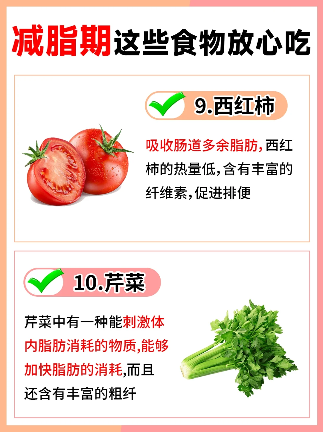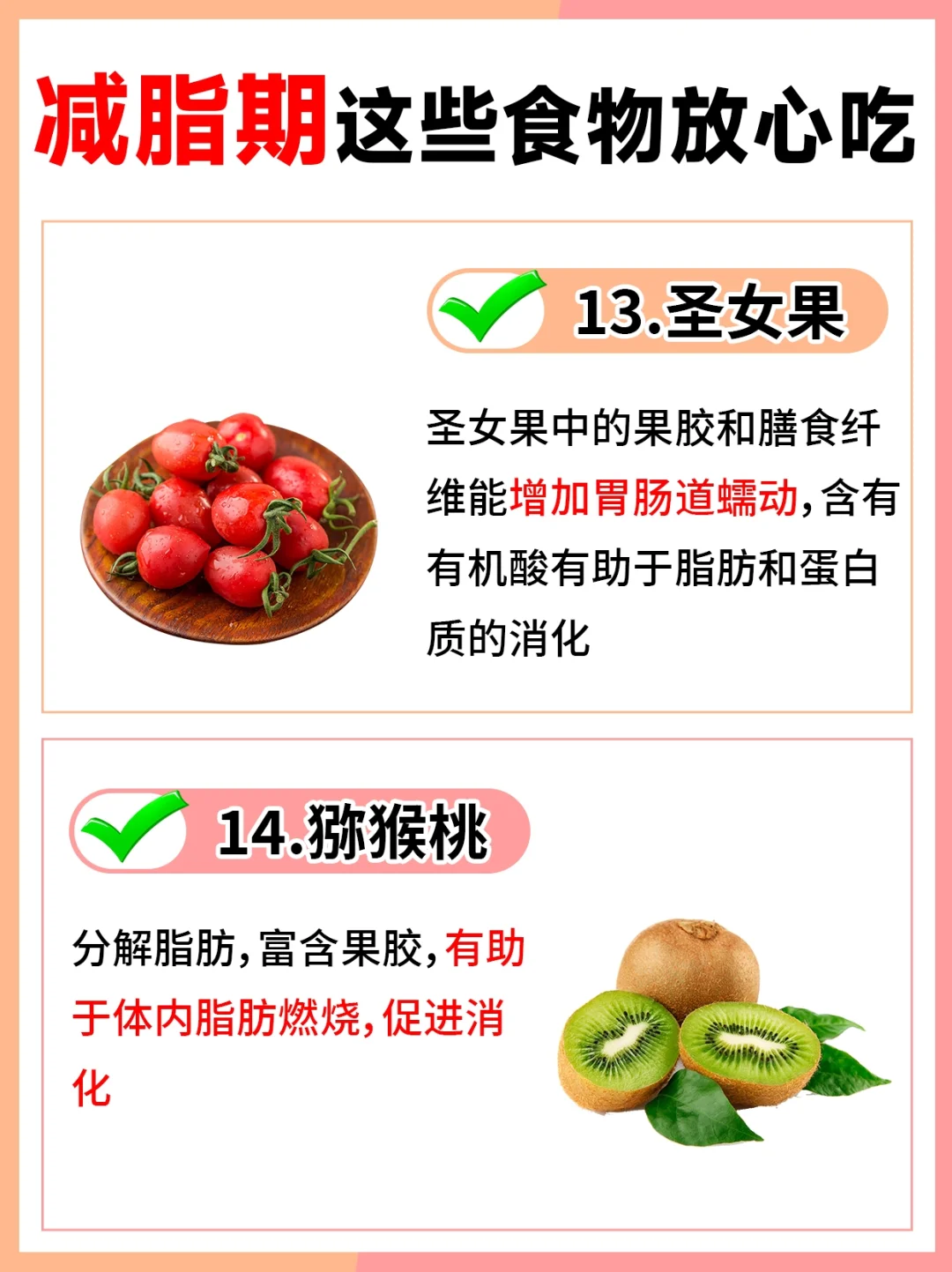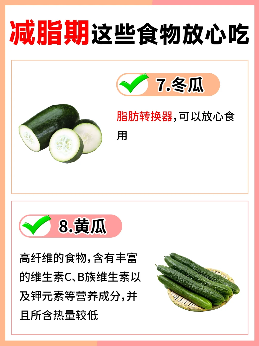 今天给大家分享几个减脂期可以放心吃的食物 🔶鸡蛋🥚 🔶鸡胸肉 🔶牛肉(瘦牛肉) 🔶鱼肉 🔶鲜虾🦐 🔶生菜 🔶冬瓜 🔶黄瓜🥒 🔶西红柿🍅 🔶芹菜 🔶玉米 🔶菠菜 🔶圣女果 🔶猕猴桃🥝 以上食物虽说减脂期可以放心吃,但也要注意营养搭配 ✅主食+蛋白质+果蔬