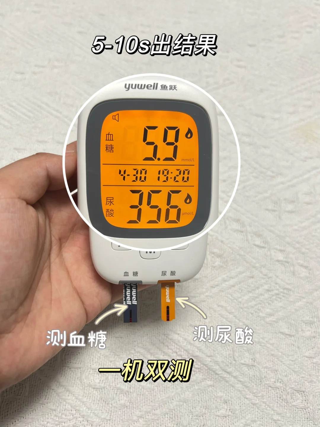 它不仅可以测尿酸,还能同时测血糖,采一次血,就可以尿酸、血糖都瞬间知晓,给健康上双重保险⭐️