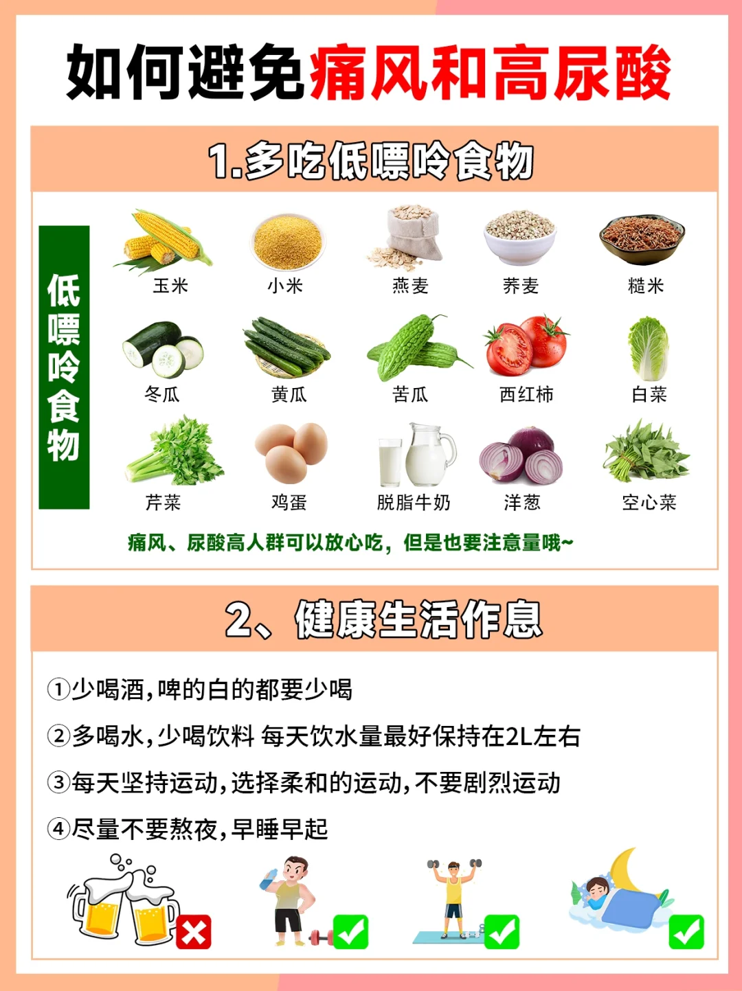 🔸多吃低嘌呤食物:玉米、小米、燕麦、冬瓜、黄瓜等