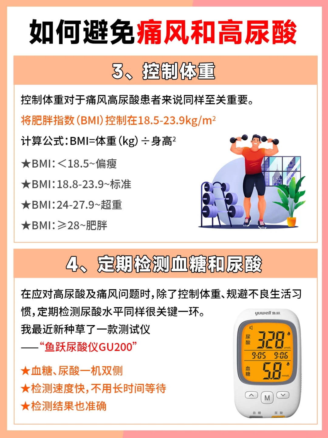🔸定期检测血糖和尿酸