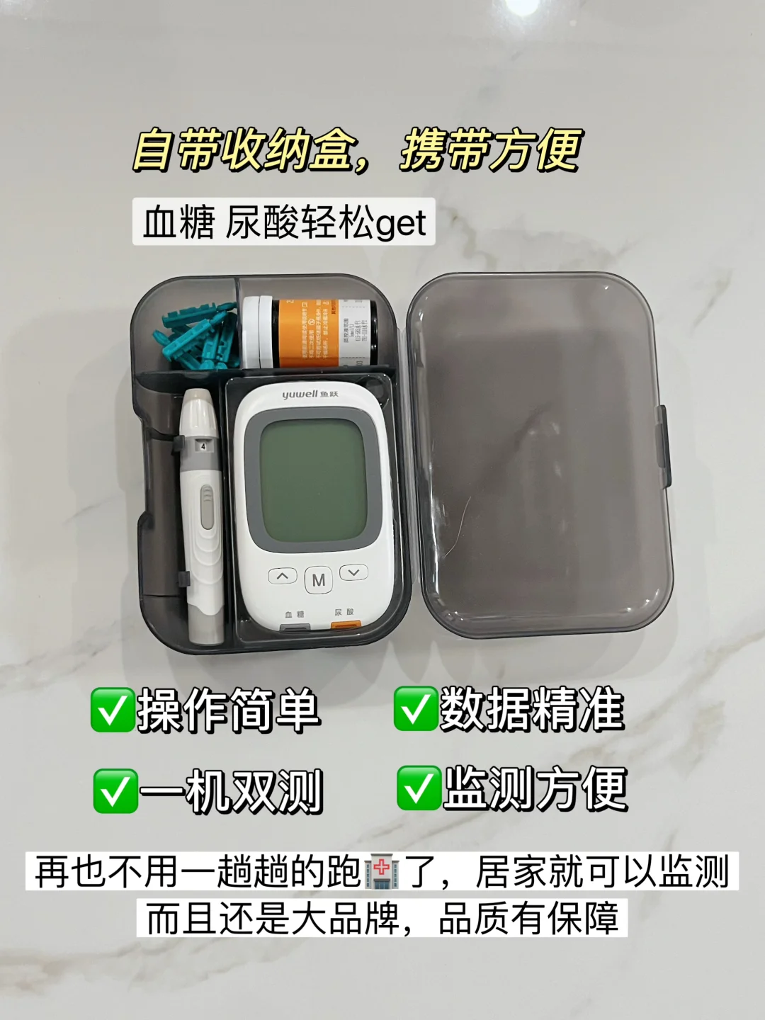 我做了好久的攻略,最终选了“鱼跃尿酸仪”,在家就能轻松测尿酸