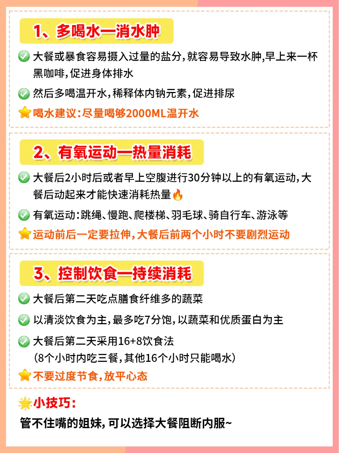 其实就是在大餐后,身体和食物还没有完全合二为一的时候,及时补救❗️