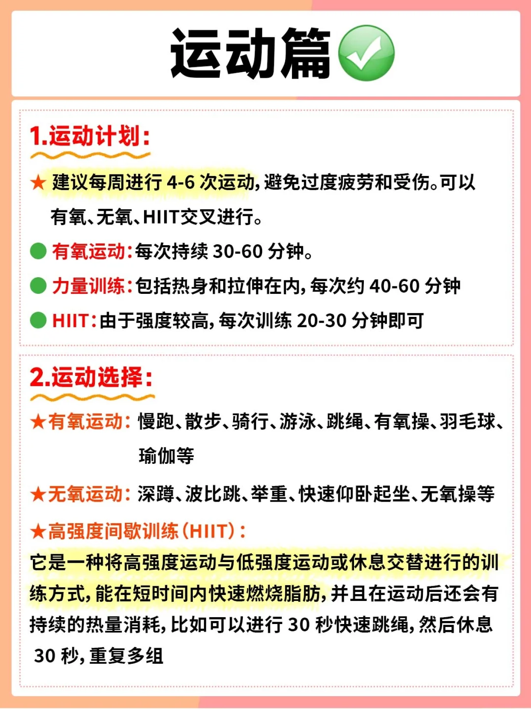 ✨有氧运动:慢跑、散步、骑行、跳绳、瑜伽等