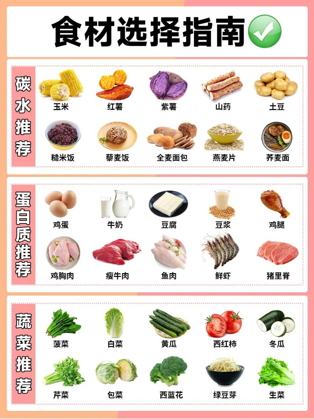 ✅碳水推荐:玉米、红薯、紫薯、山药、土豆🥔、糙米饭、藜麦饭等