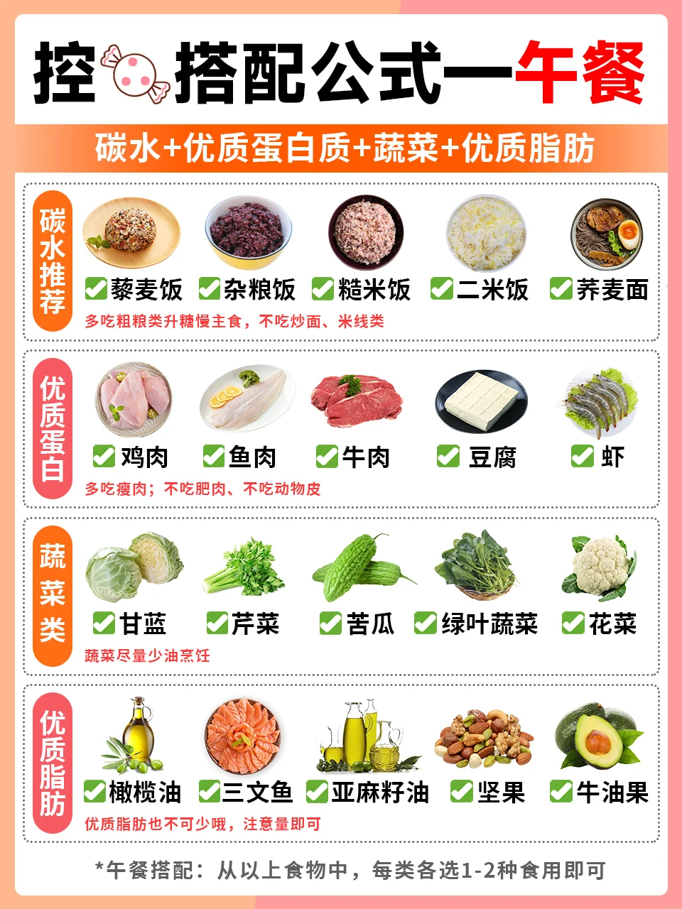 2⃣午餐:优质碳水 + 优质蛋白 + 膳食纤维+优质脂肪