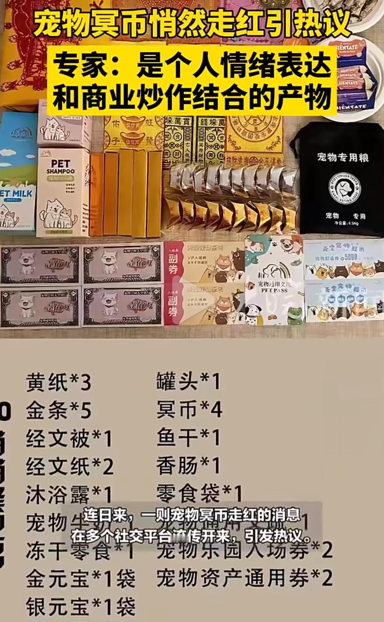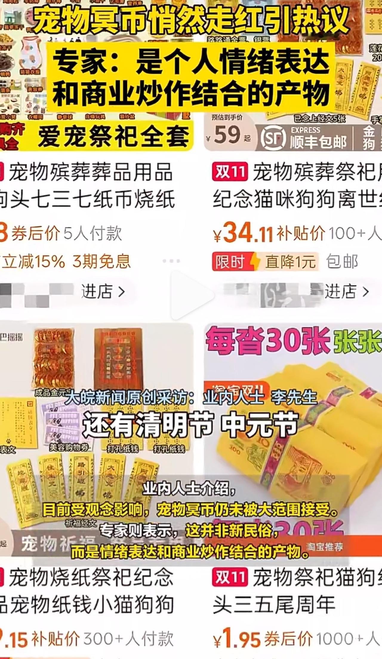 现在电商上的宠物冥币都快卖疯了!不光有纸币样、小鱼造型的定制款,还特意搭了纸扎零食、金条凑成祭祀套餐,19到59块钱就能抱走一套。更让人意外的是,海外订单占比都快一半了,还在成倍往上涨,商家直接把这当成“赚大钱的新路子”吹。 买的人图啥呀?还不是宠物走了,心里难受,想找个方式寄托思念。那些冥币烧的哪里是迷信,分明是主人没说够的牵挂,这种仪式感确实能让人心里好受点。但反对的声音也不少:有人直戳这是“智商税”,成本才3块钱,转手卖几十,毛利率超10倍,纯纯商家炒作;还有人觉得,传统冥币是给逝者的,用在宠物身上,把文化的庄重感都弄没了。 其实这事真没那么复杂。宠物早就是很多人眼里的家人,这份情感寄托该被尊重。只要不违反规矩、不在公共场所焚烧,怎么纪念是个人自由。但商家也别太过分,别借着思念搞过度营销,把人家的伤心事变成赚钱的陷阱;咱们自己也得拎得清啊!宠物活着的时候多疼疼它、好好陪着它,可比死后瞎搞这些奢侈仪式实在多了。 情感经济本身没啥问题,但可别让对宠物的真心实意,变成被商家拿捏的“韭菜”,平白交了智商税!换作是你,会为宠物冥币买单不?冥币钱 宠物冥币 宠物祭祀