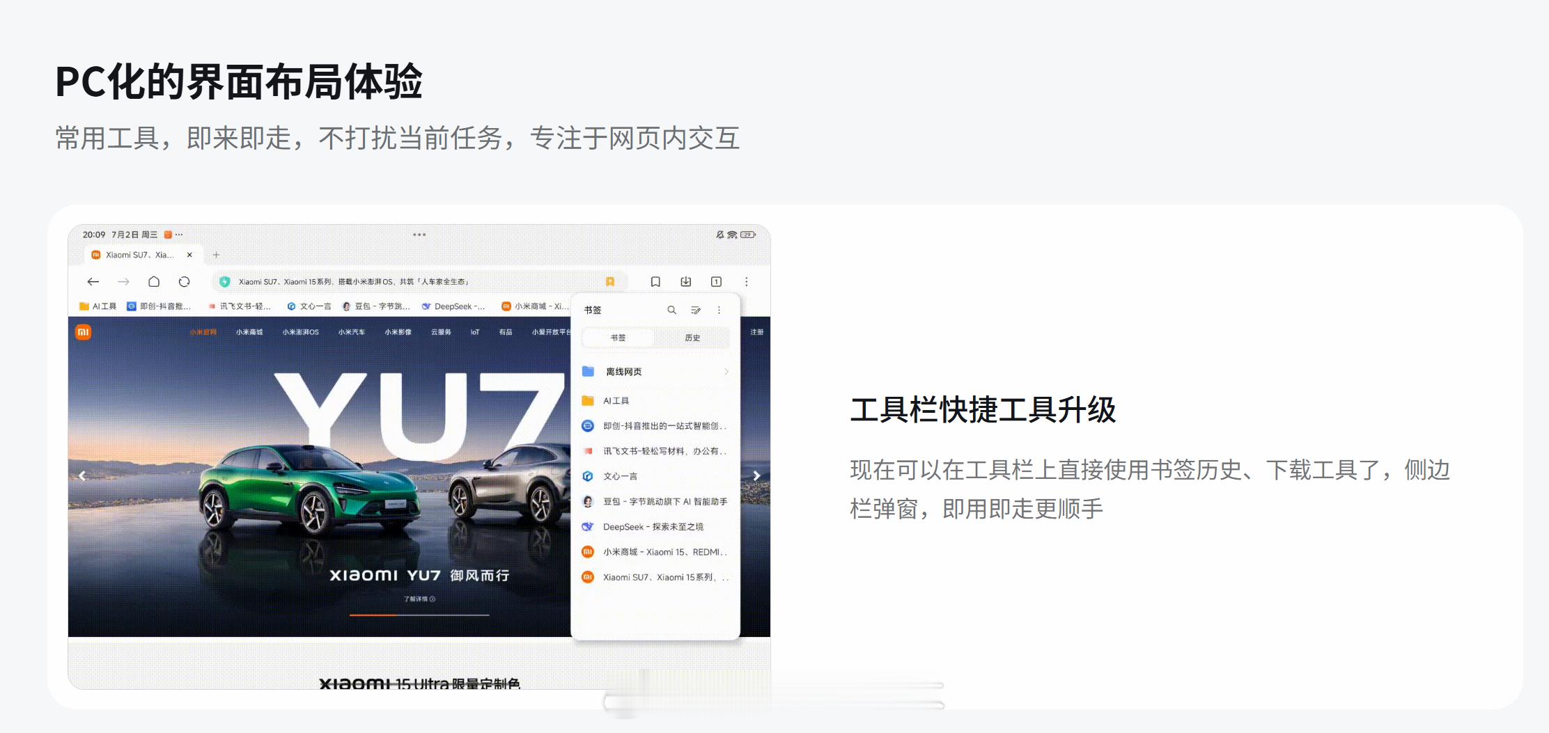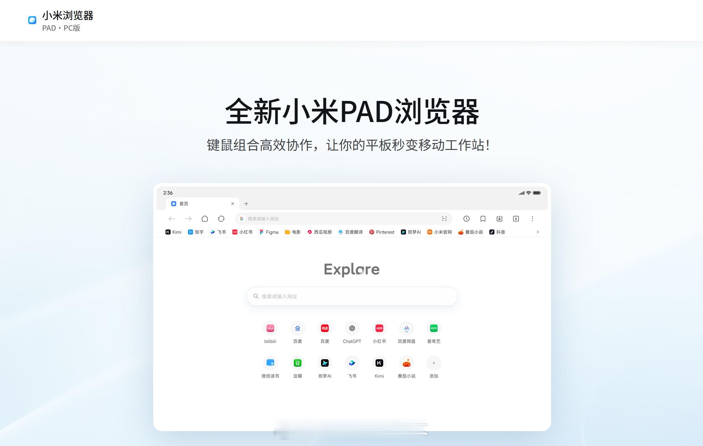小米为更多平板机型推送“全新小米PAD浏览器”,其中包括非小米澎湃OS3机型(