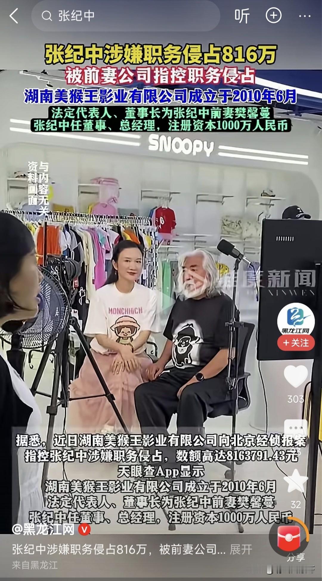 娱乐圈的瓜真是一个接一个。“丈母娘”风波刚消停,张纪中又被前妻盯上了。湖南美猴王影业有限公司指控他涉嫌职务侵占,数额高达816万。这家公司法定代表人是张纪中前妻樊馨蔓,张纪中任董事、总经理,且多年0人参保。 张纪中回应这是前妻诬告,之前就有过类似情况,湖南法院拒绝立案,北京经侦也没立案。像去年600万案件也是诬告,本是替公司付剧本费。当年离婚他把公司股、房产等都给了前妻,想换安宁,结果还是被纠缠。这剧情比他导的剧还精彩,不知道后续会怎样。